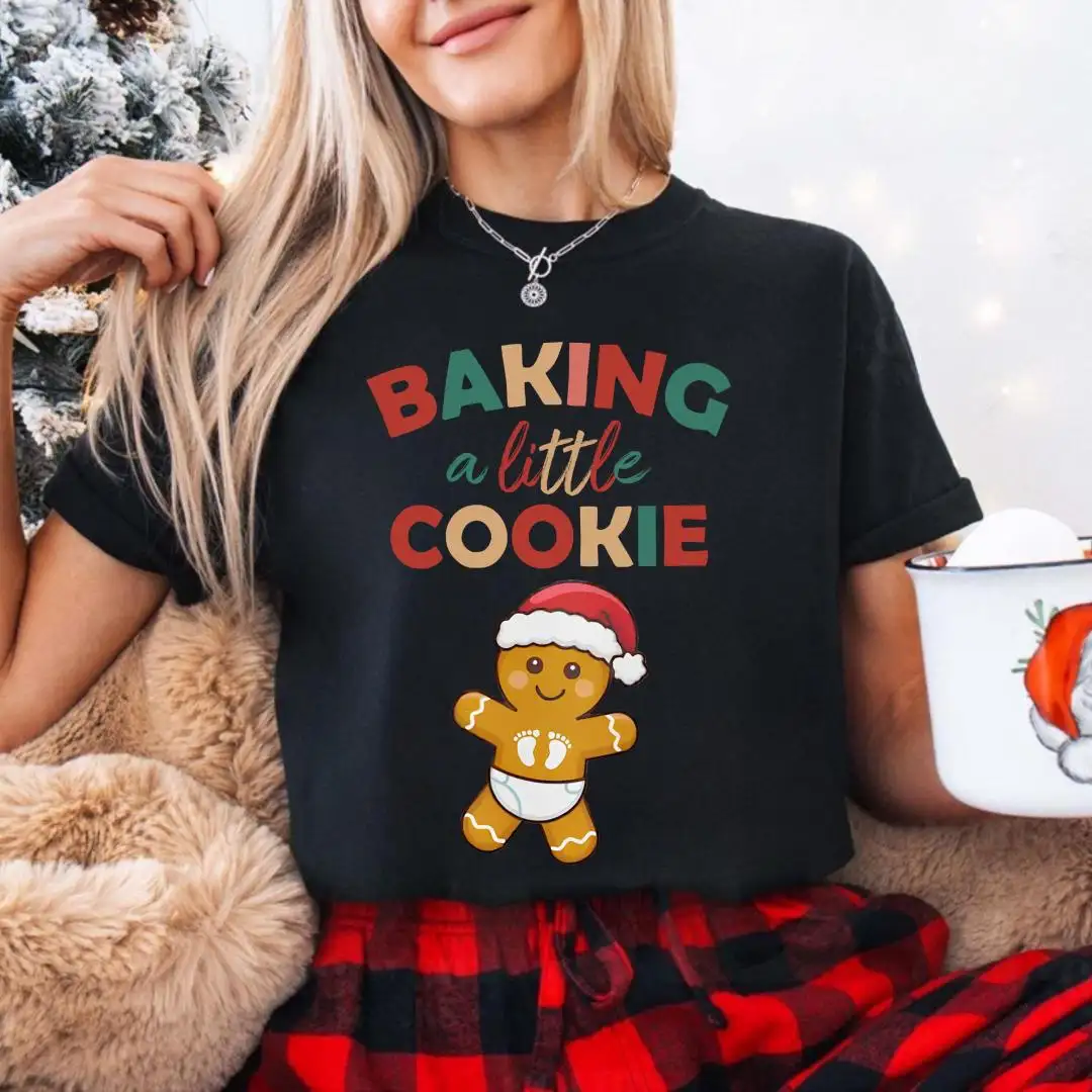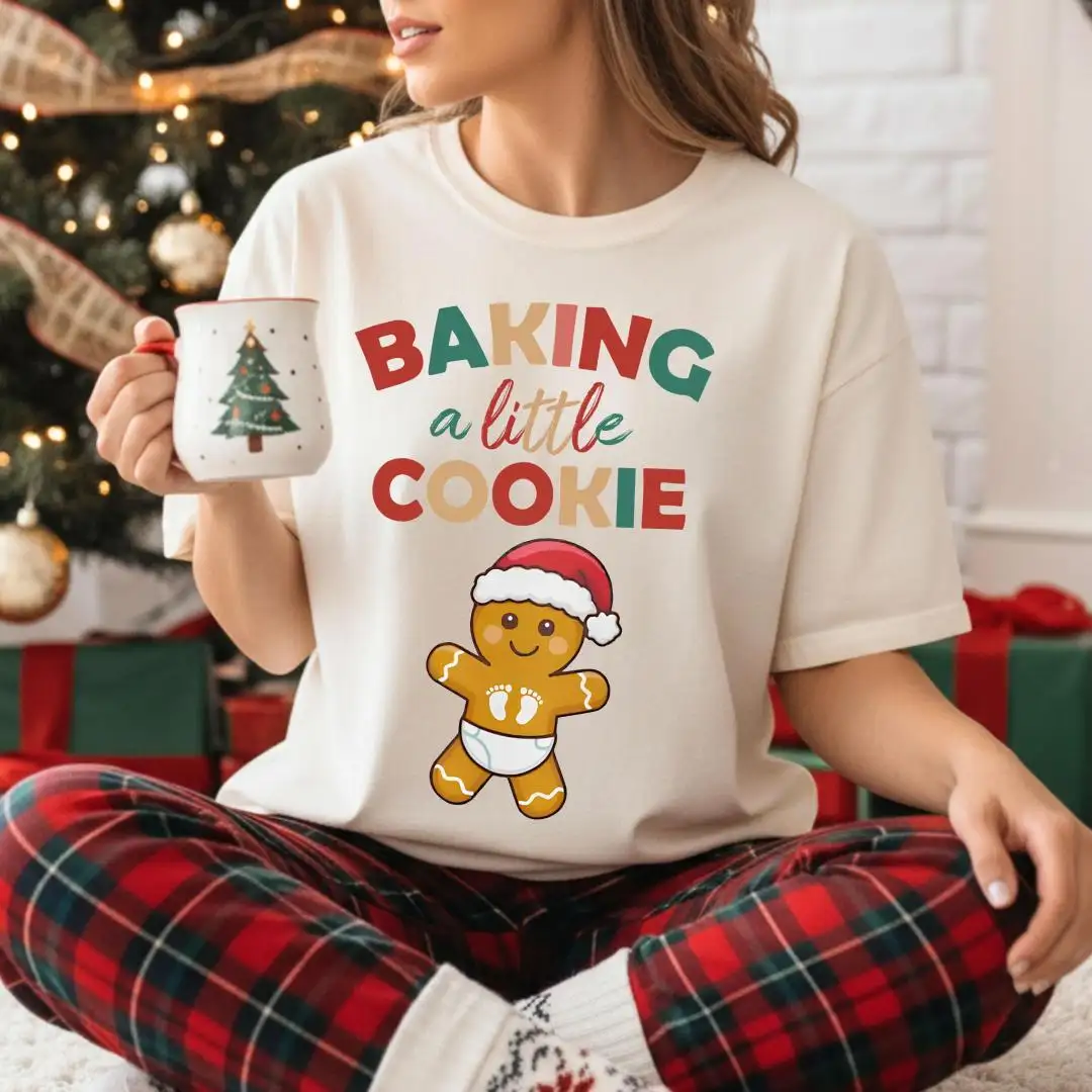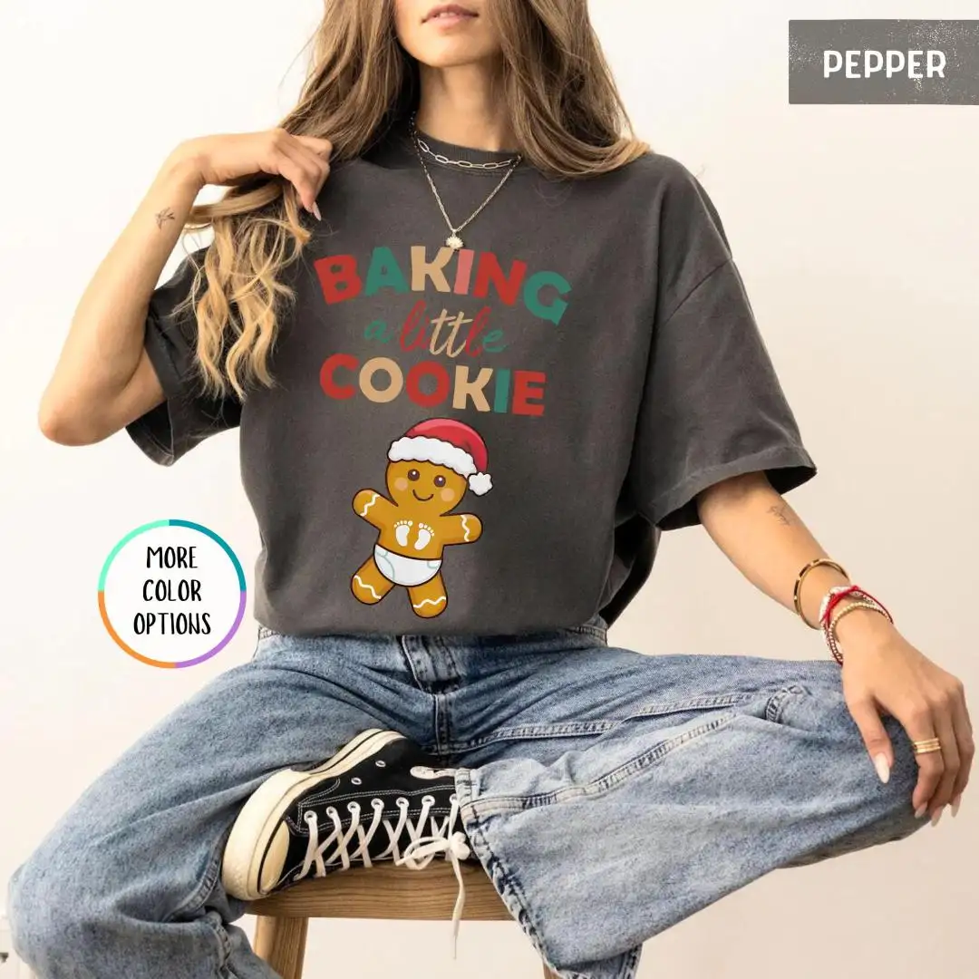 Comfort Colors® Maternity Christmas Shirt, Baby Gingerbread, Baby Reveal Gift, Xmas Pregnancy Announcement Tee, Baking A Little Cookie Tee