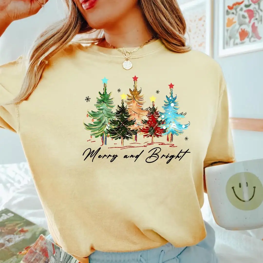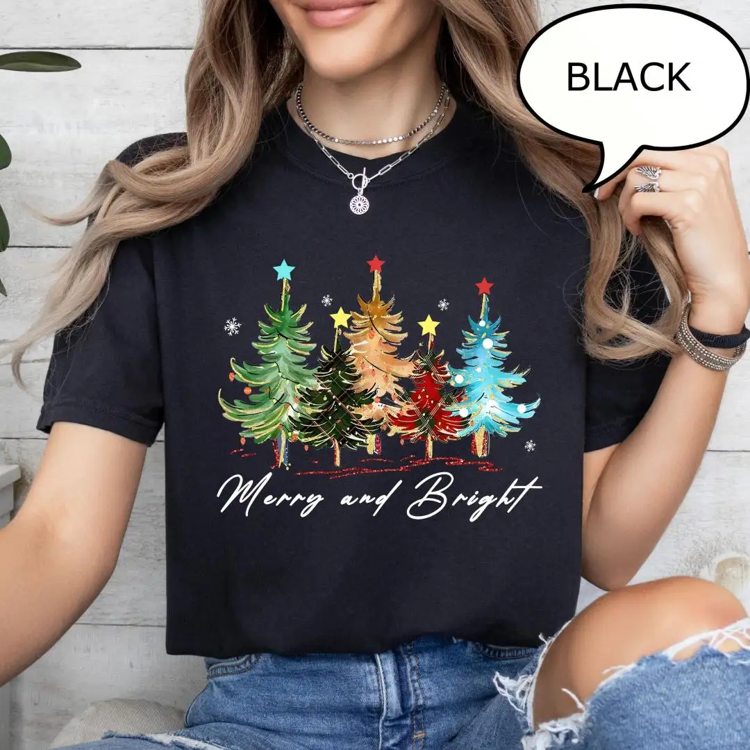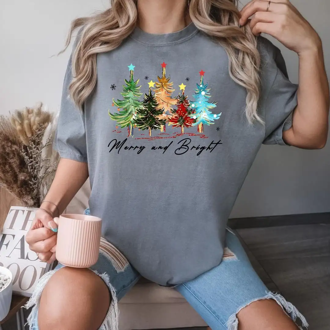 Comfort Colors Merry And Bright Christmas Tree Shirt