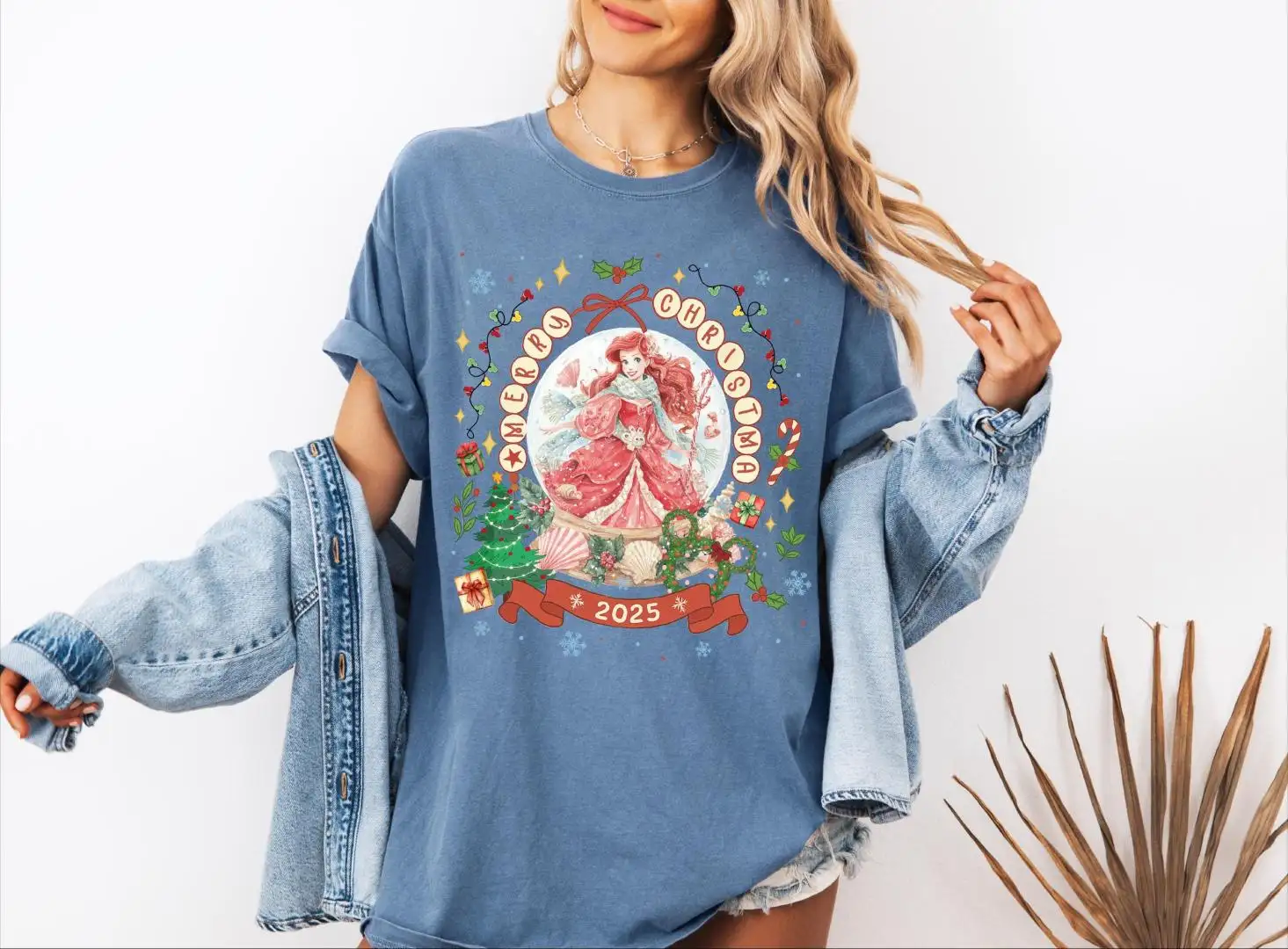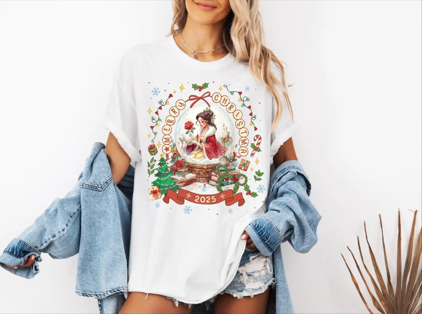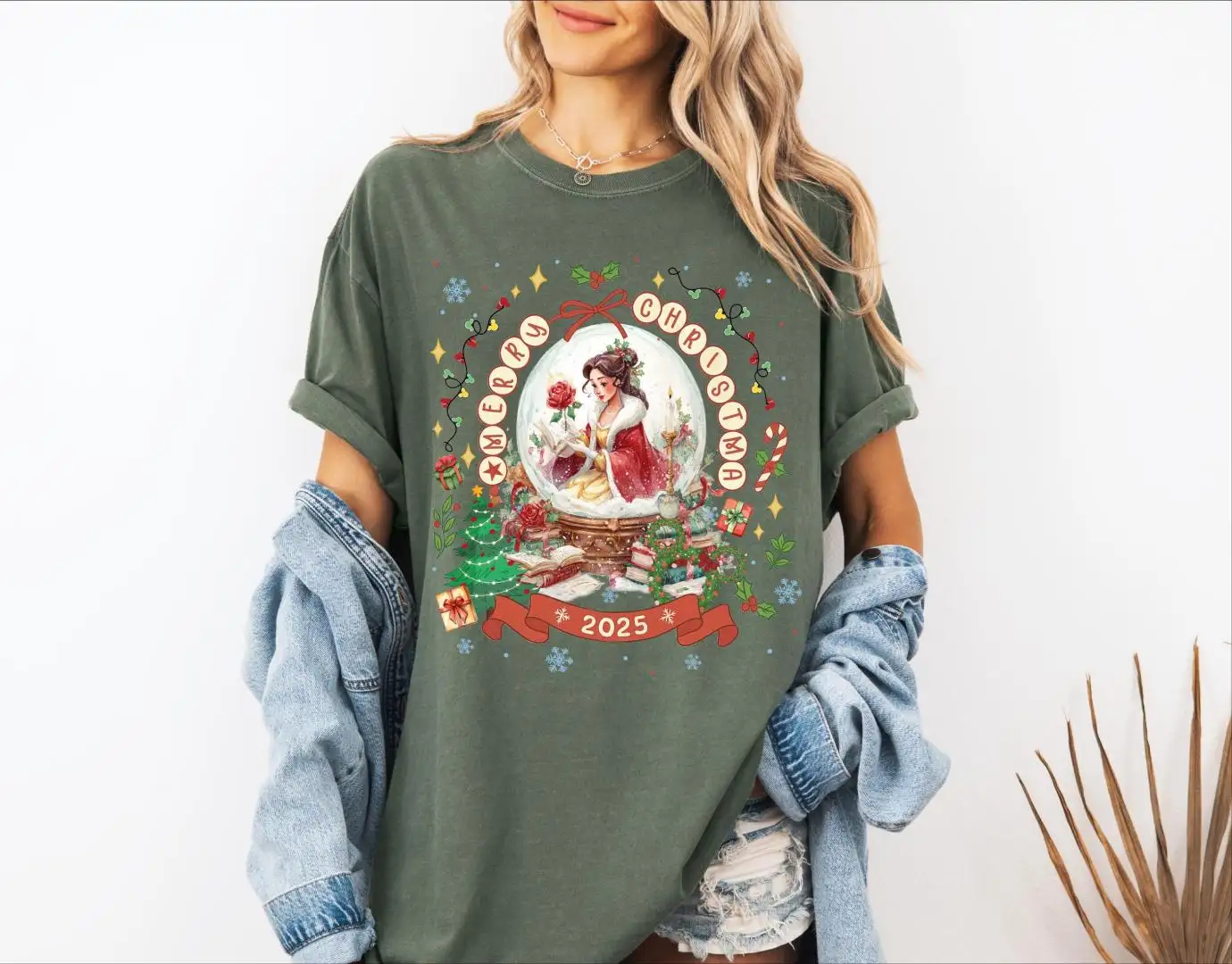 Review Comfort Colors® Merry Christmas 2025 Princess Snow Globe Shirt, Disney Princesses Merry Christmas T-Shirt, Princess Christmas Tee