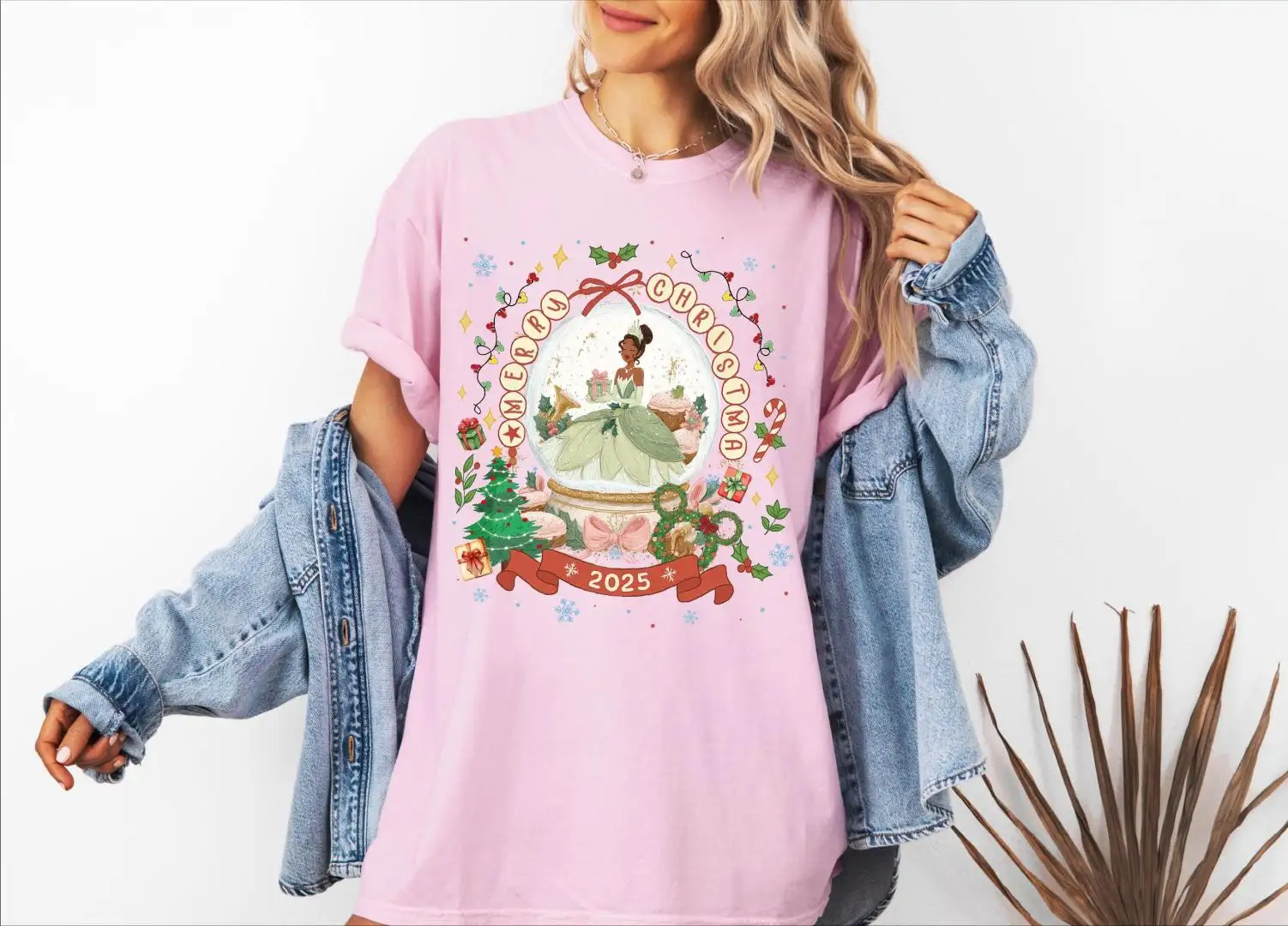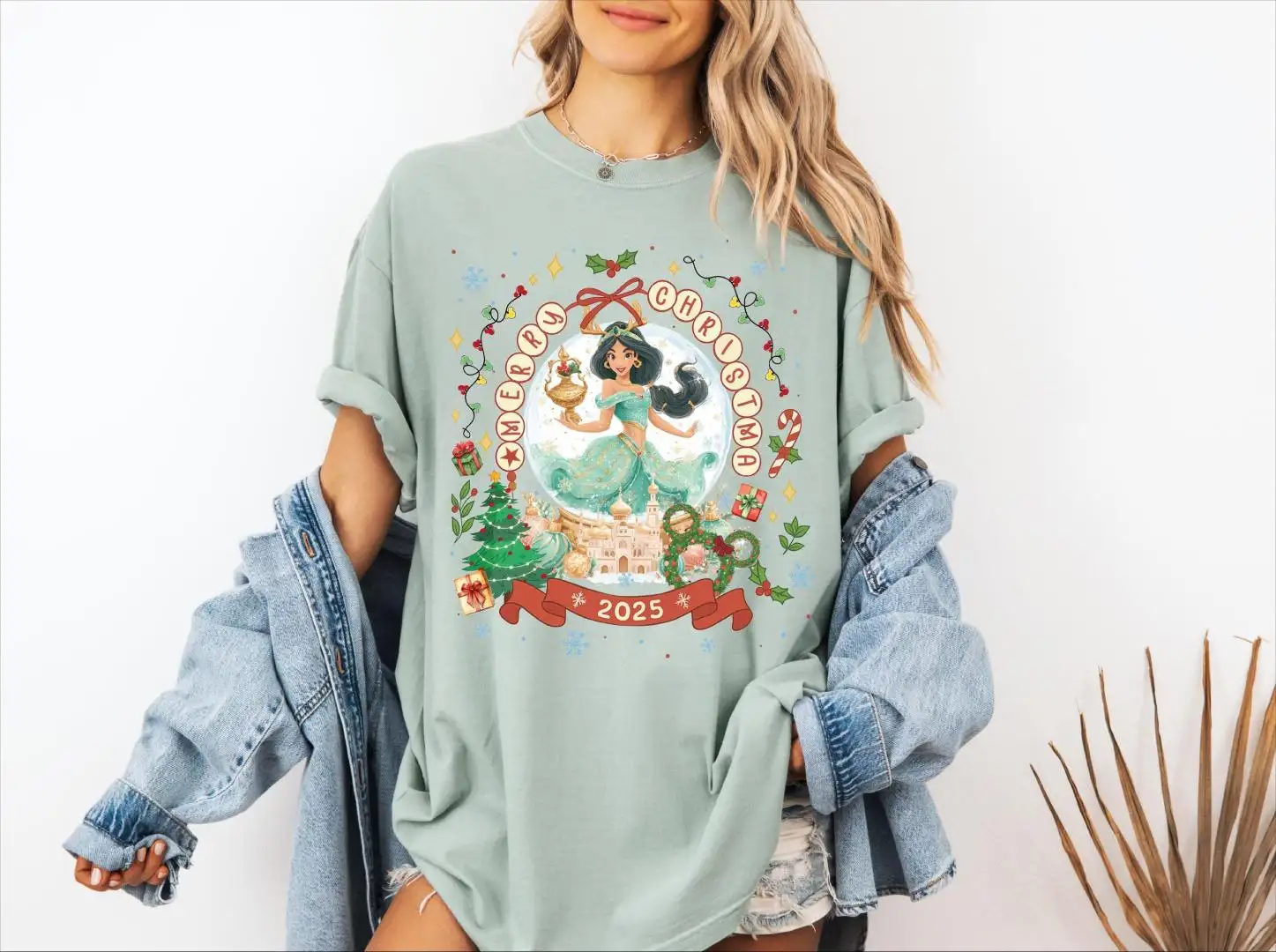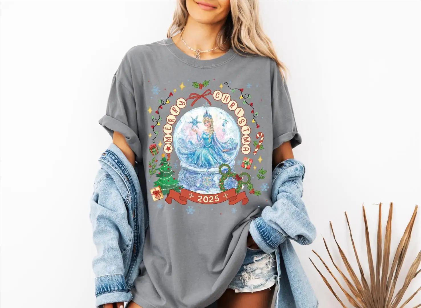Review Comfort Colors® Merry Christmas 2025 Princess Snow Globe Shirt, Disney Princesses Merry Christmas T-Shirt, Princess Christmas Tee