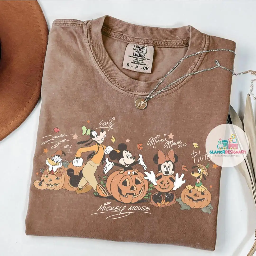 Comfort Colors Mickey and friends Autumn Shirt, Disneyland Fall Vibes Tee, Disney Family Halloween Trip Magic Kingdom Shirt Disney Pumpkin