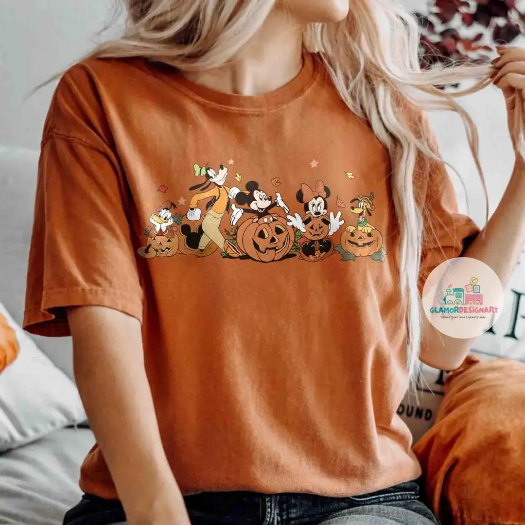 Comfort Colors Mickey and friends Autumn Shirt, Disneyland Fall Vibes Tee, Disney Family Halloween Trip Magic Kingdom Shirt Disney Pumpkin