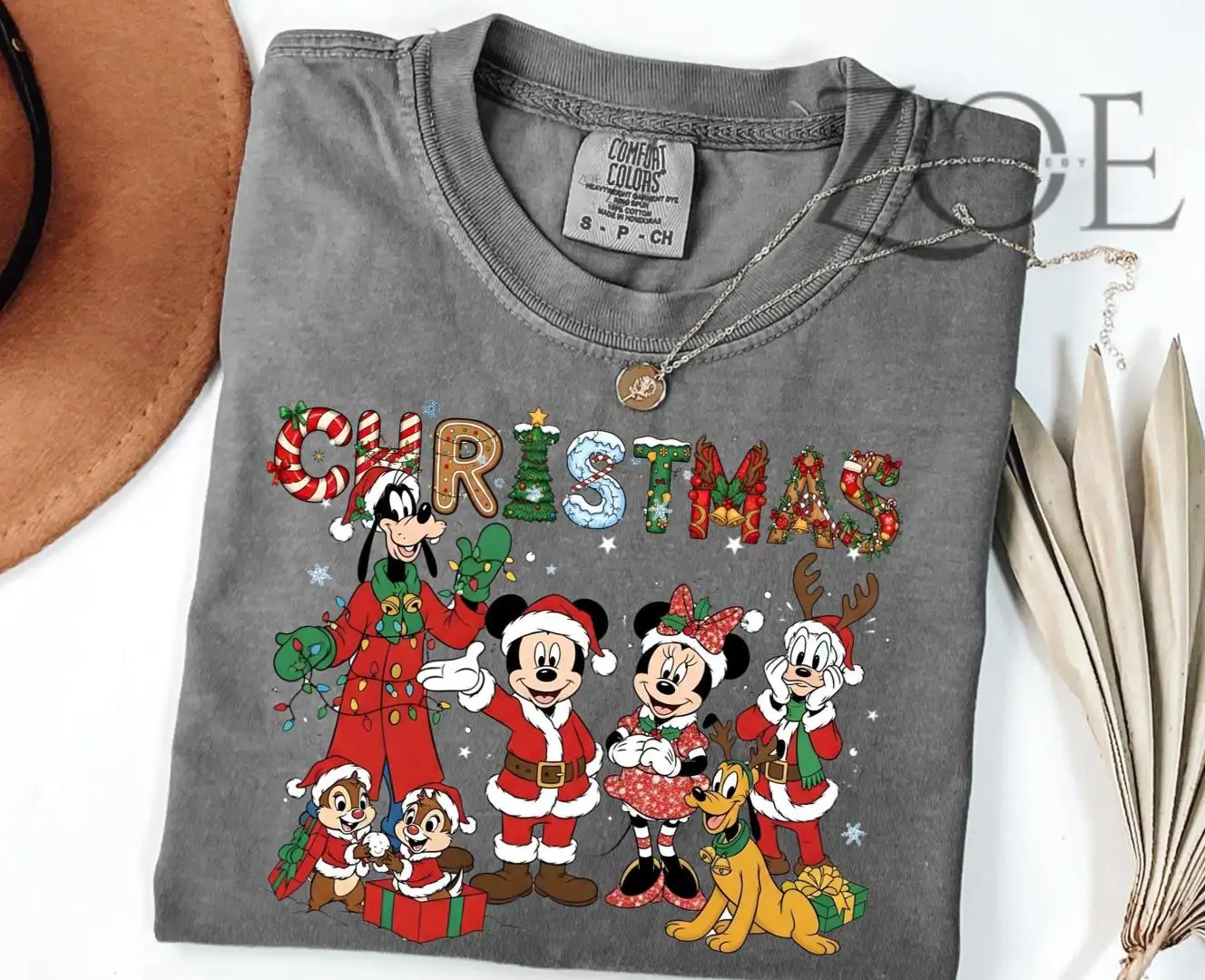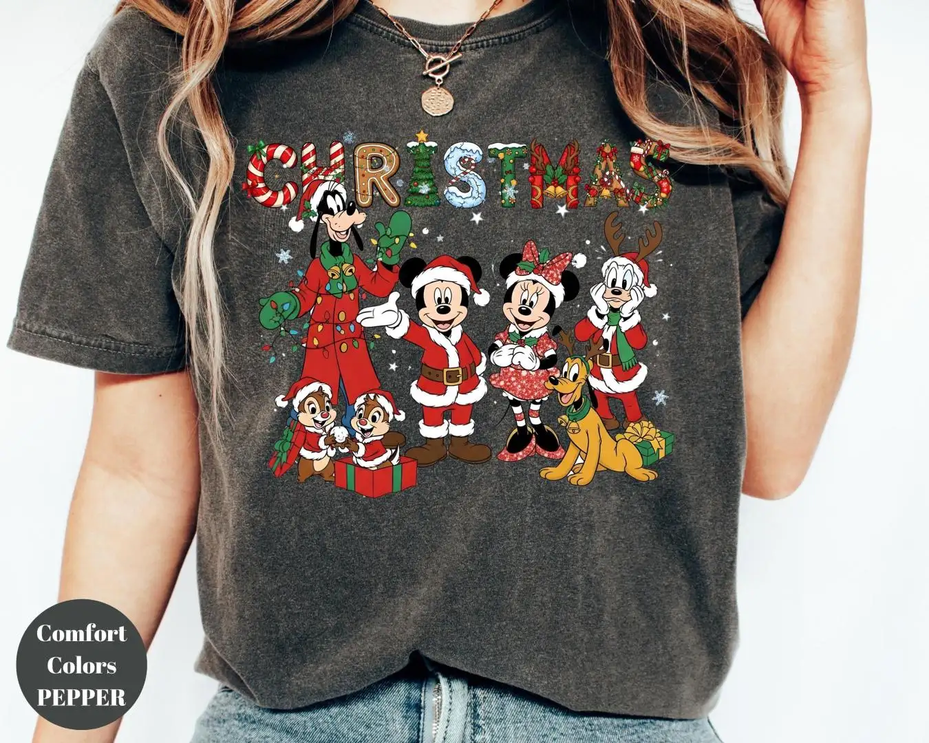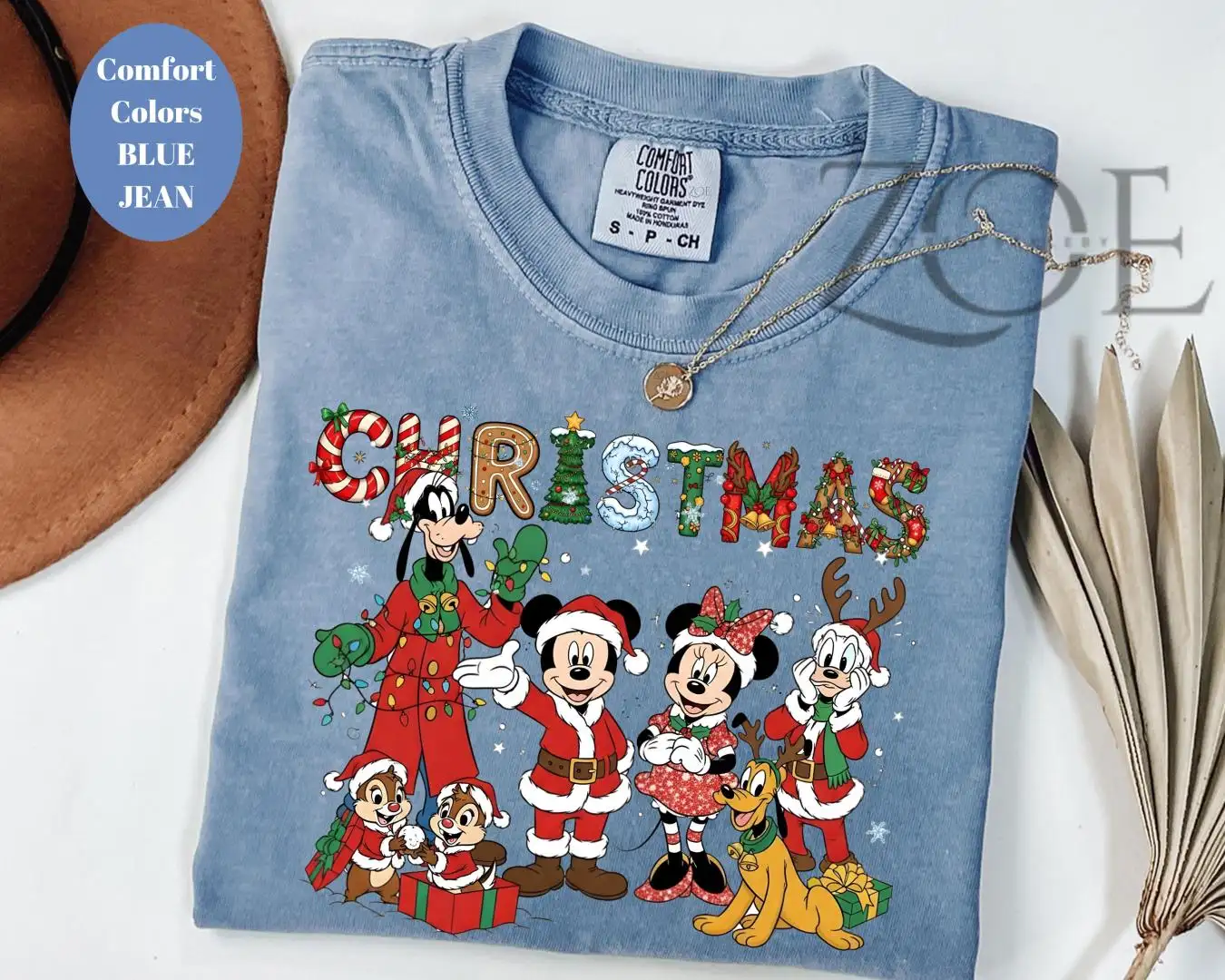 Comfort Colors Mickey and Friends Christmas Shirt, Family Xmas Shirt, Christmas family Trip Shirt Very Merry Xmas Santa Mickey Mouse Shirt