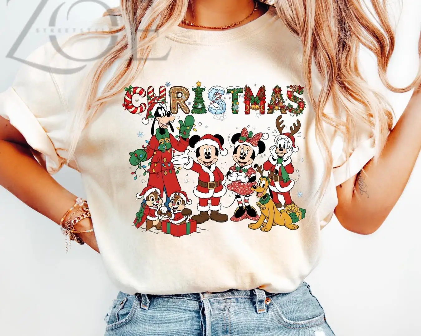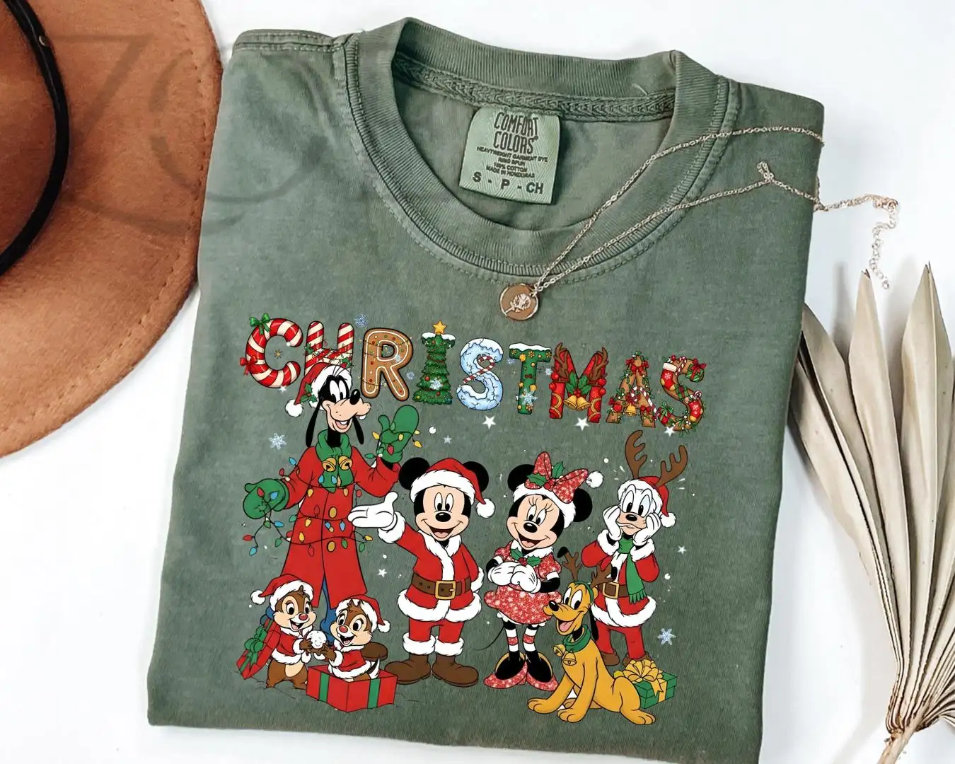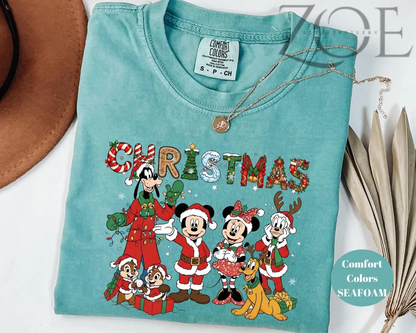 Comfort Colors Mickey and Friends Christmas Shirt, Family Xmas Shirt, Christmas family Trip Shirt Very Merry Xmas Santa Mickey Mouse Shirt