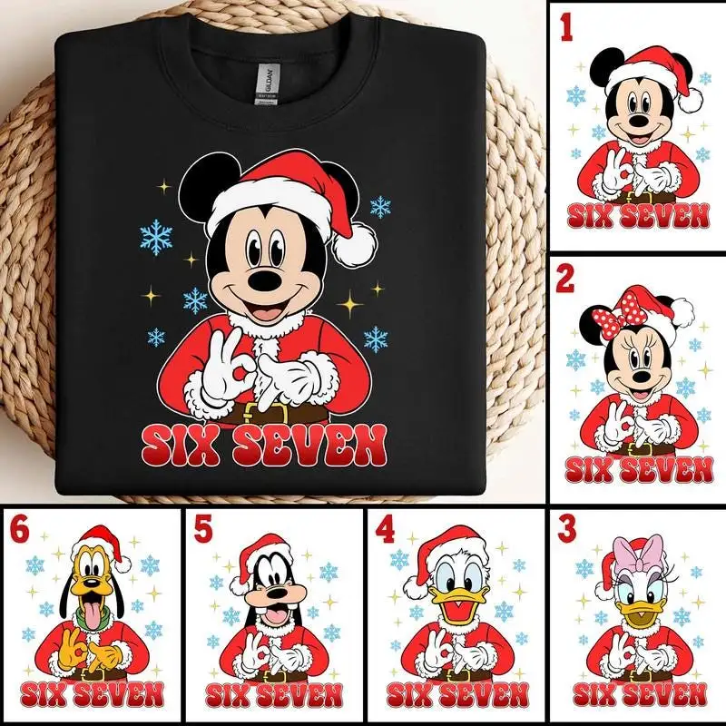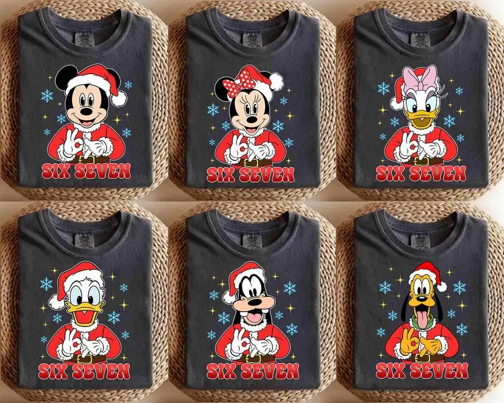 Comfort Colors Mickey and Friends Six Seven Christmas Shirt, Funny 67 Disneyland Christmas Shirt, 6 7 Trend Xmas Sweater, Disneyland Trip