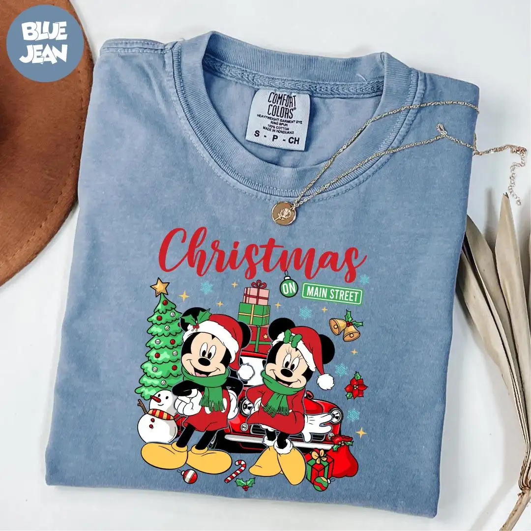 Comfort Colors® Mickey and Minnie Xmas Shirt, Christmas on Main Street Shirt, Mickey Xmas Holiday Shirt, Disney Christmas Party Shirt