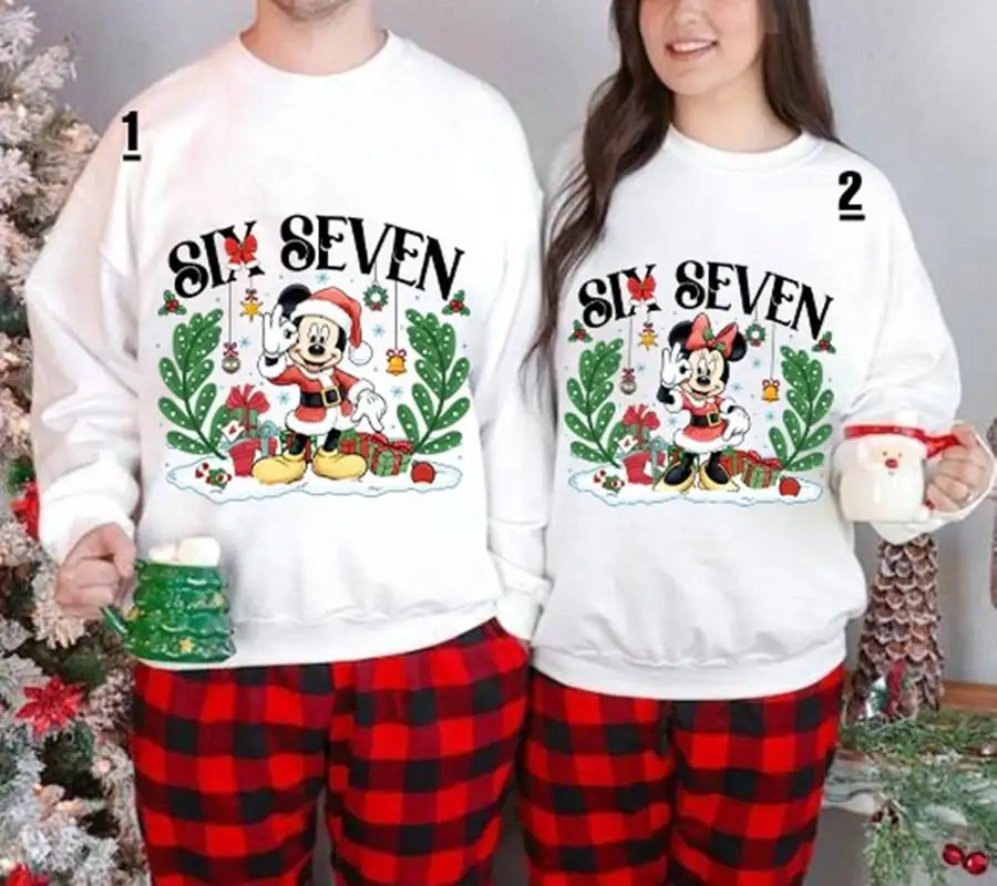 Comfort Colors Mickey Minnie Six Seven 6 7 Shirt Mickey Minnie Xmas Shirt Six Seven Christmas Shirt Disneyland Couple Matching Xmas Tee 02