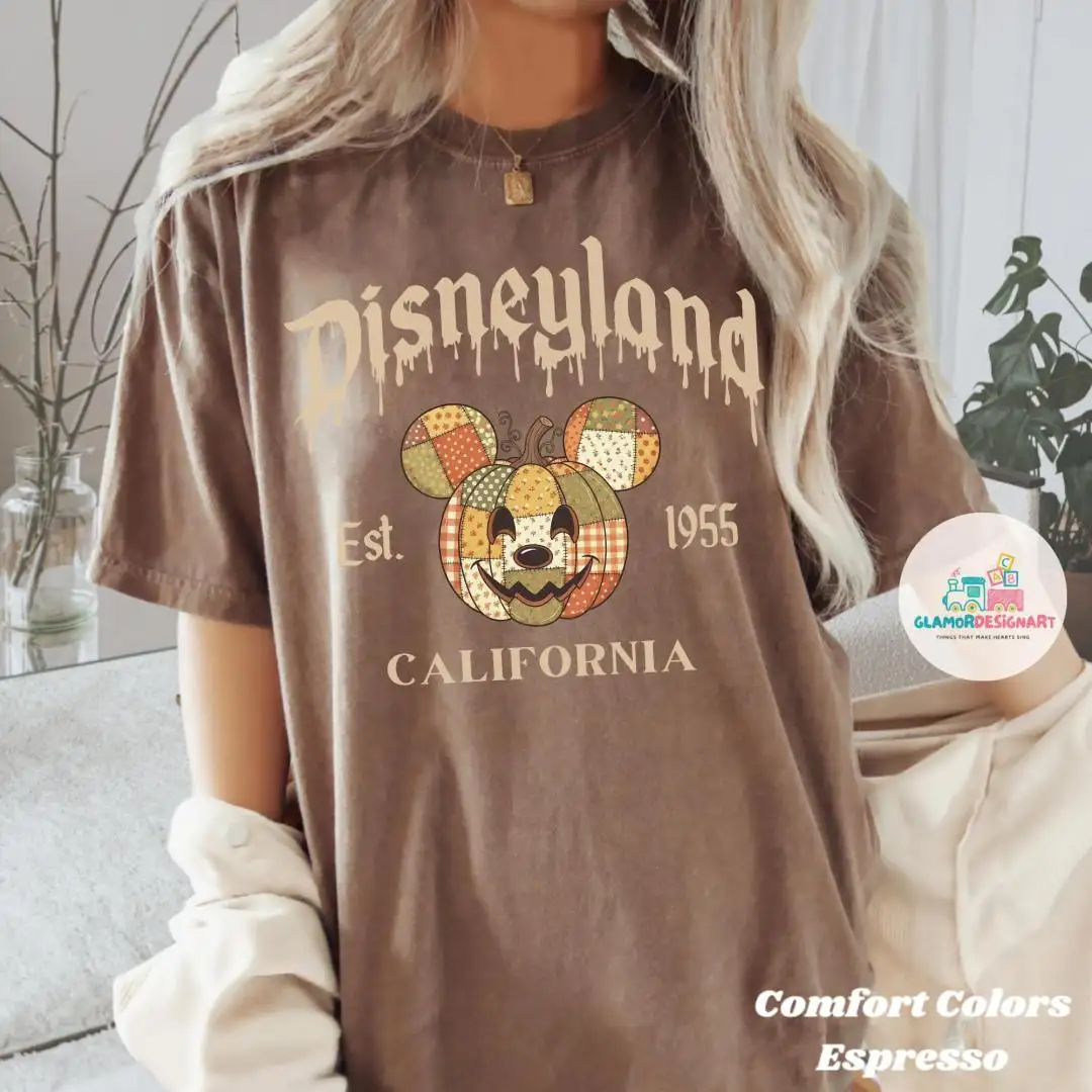 Review Comfort Colors Mickey Pumpkin Halloween Patchwork Shirt Disney Fall Tee Disneyland Halloween Shirt, Rustic Autumn Pumpkin Face Shirt