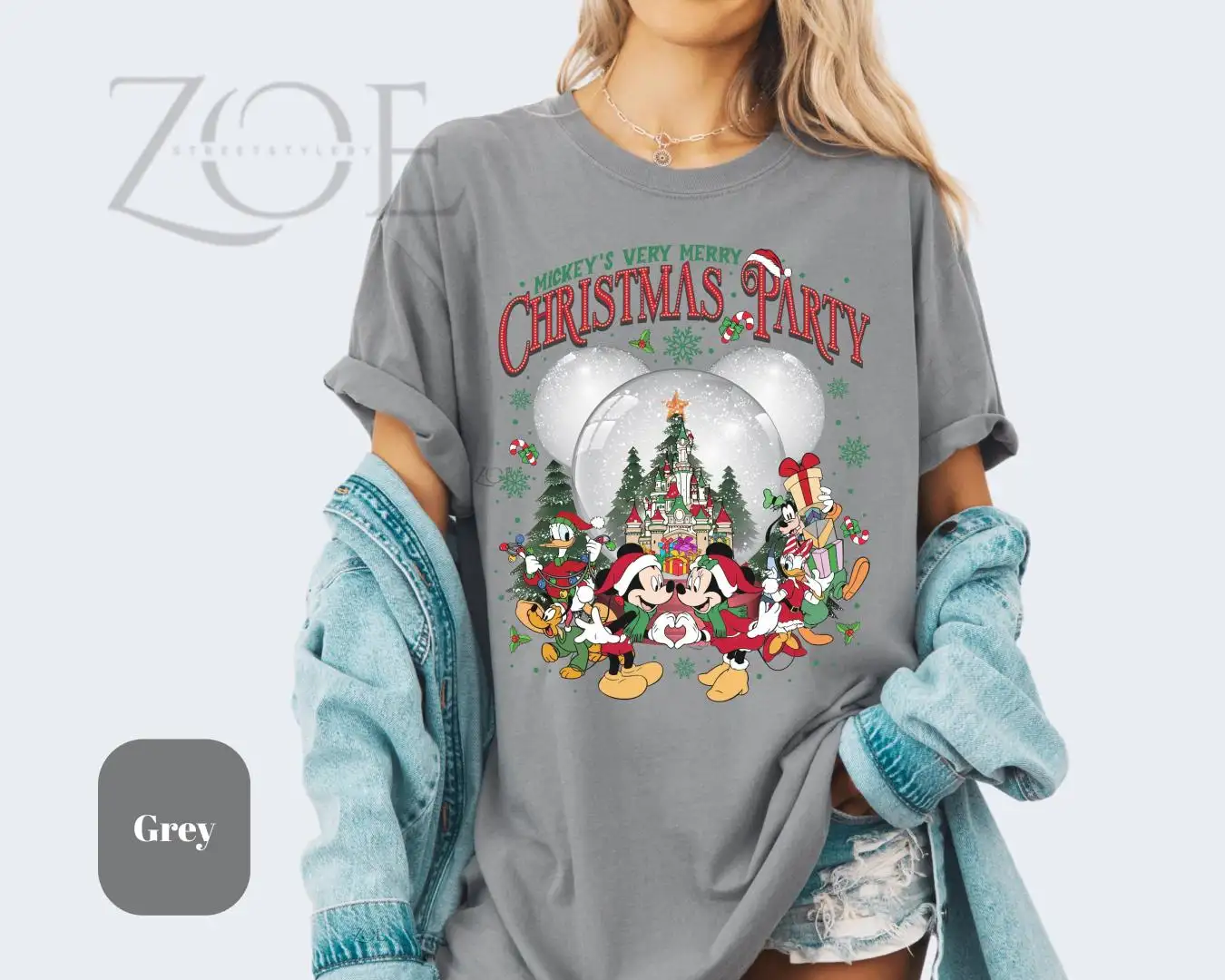 Comfort Colors Mickey's Very Merry Christmas Party 2025 Shirt Disney Santa Mickey And Friends Christmas Lights Shirt Disneyland Xmas Tee