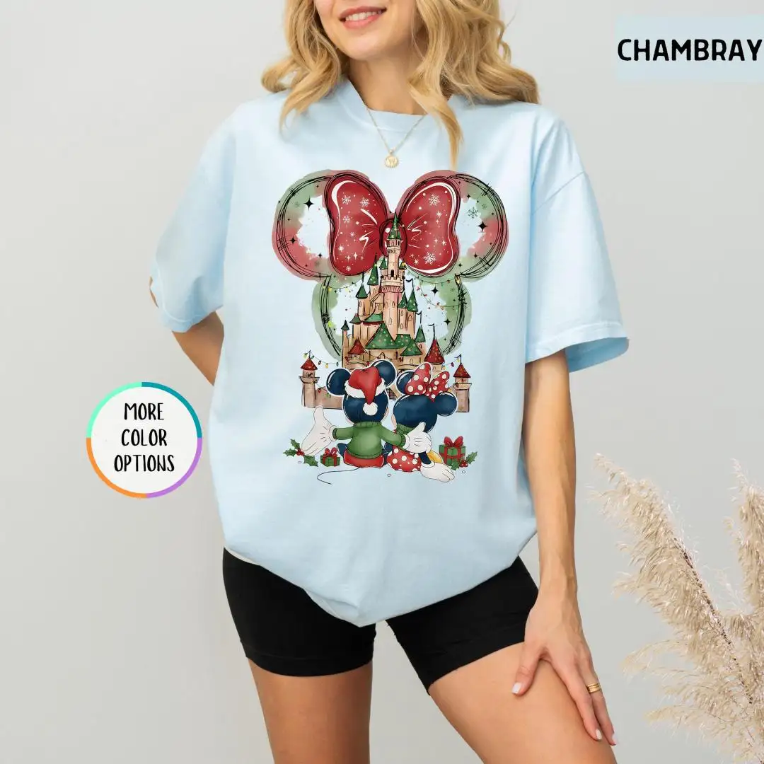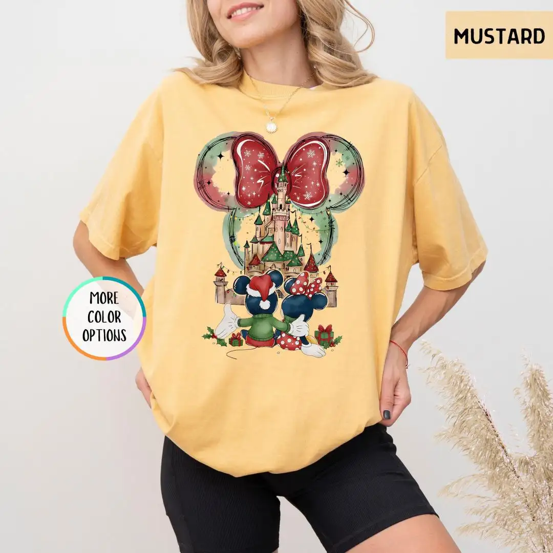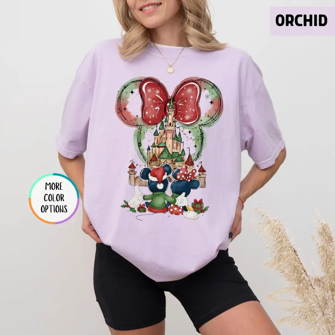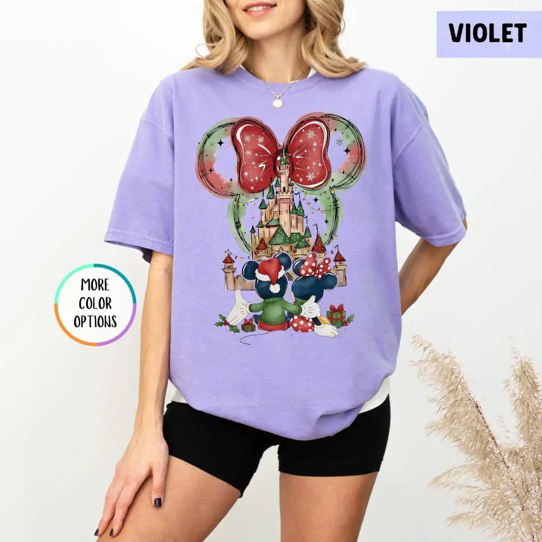 Review Comfort Colors Minnie Christmas Shirt, Disneyland Trip Shirt, Magical Castle Shirt, Disney Holiday Shirt For Women, Disney Xmas Party Gift
