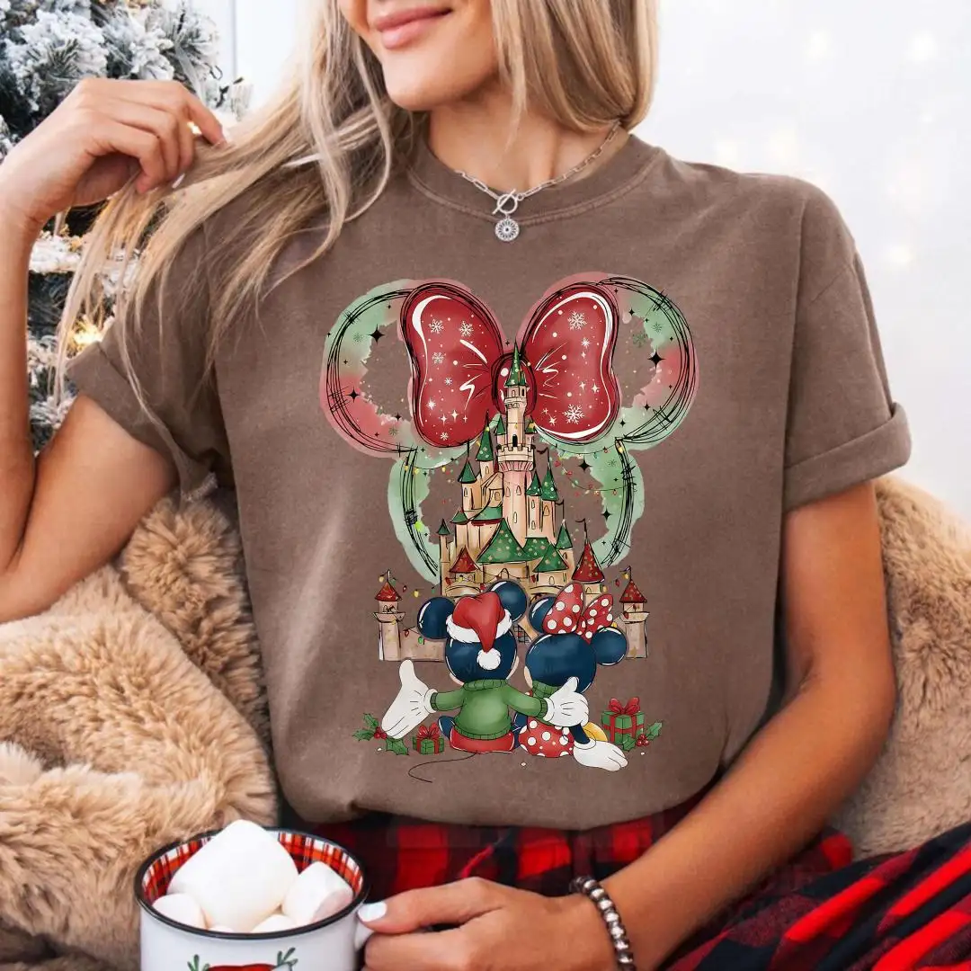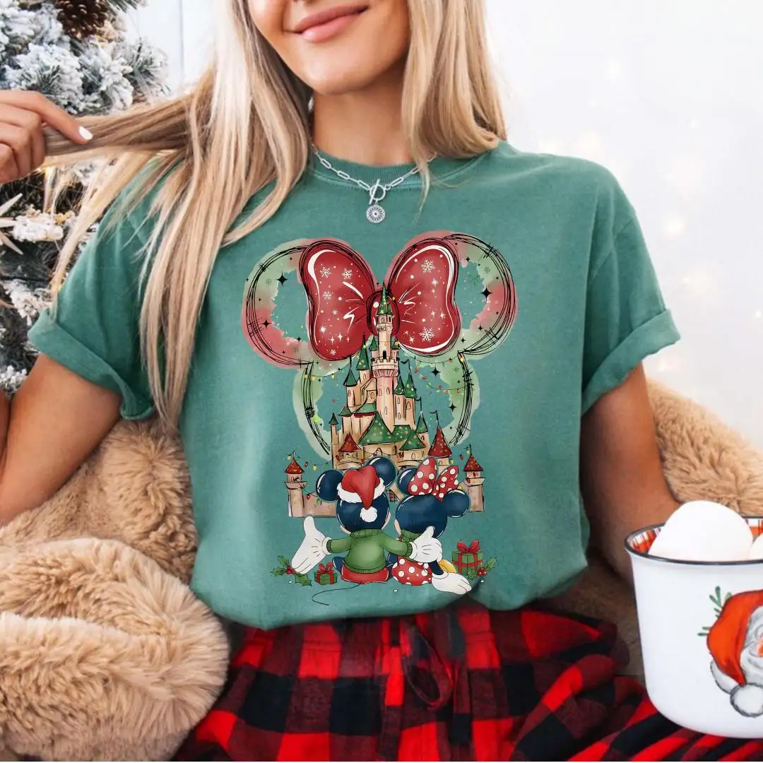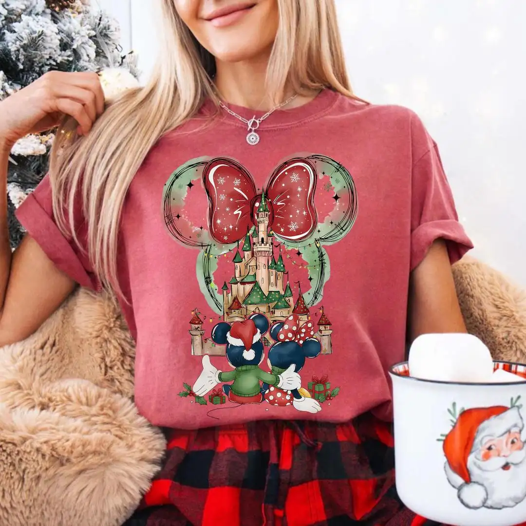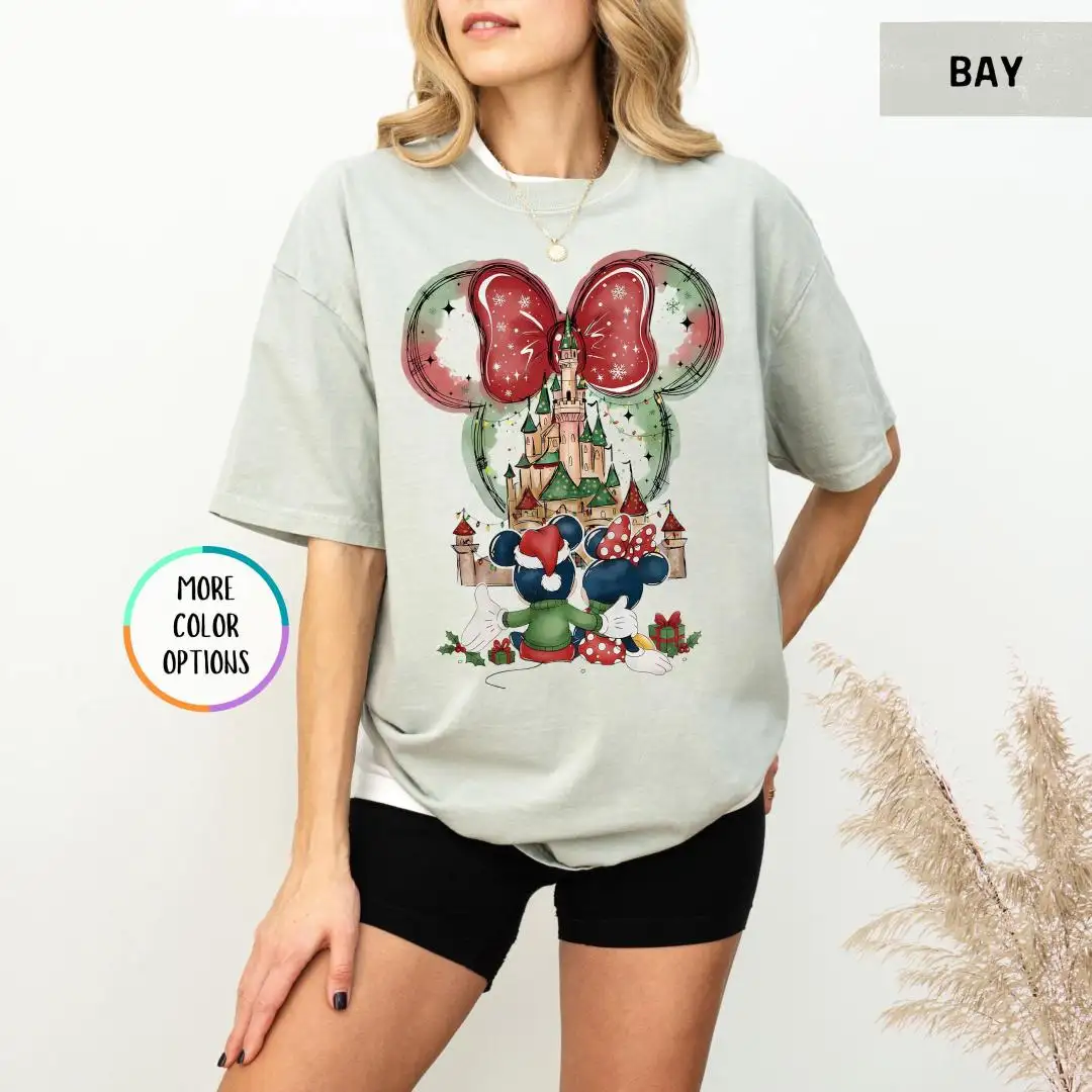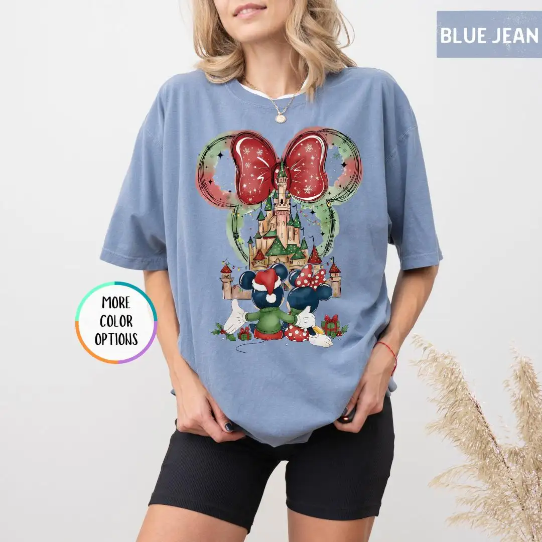 Review Comfort Colors Minnie Christmas Shirt, Disneyland Trip Shirt, Magical Castle Shirt, Disney Holiday Shirt For Women, Disney Xmas Party Gift
