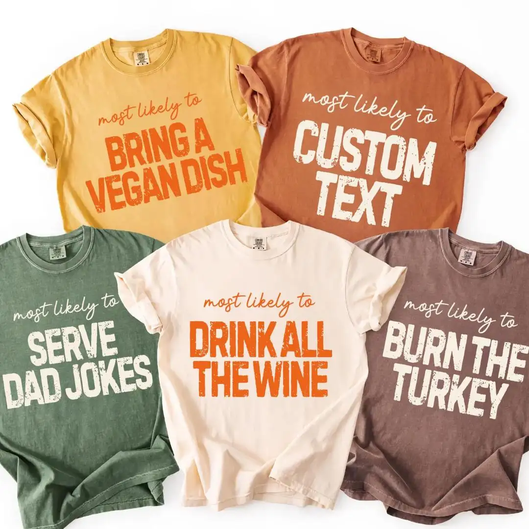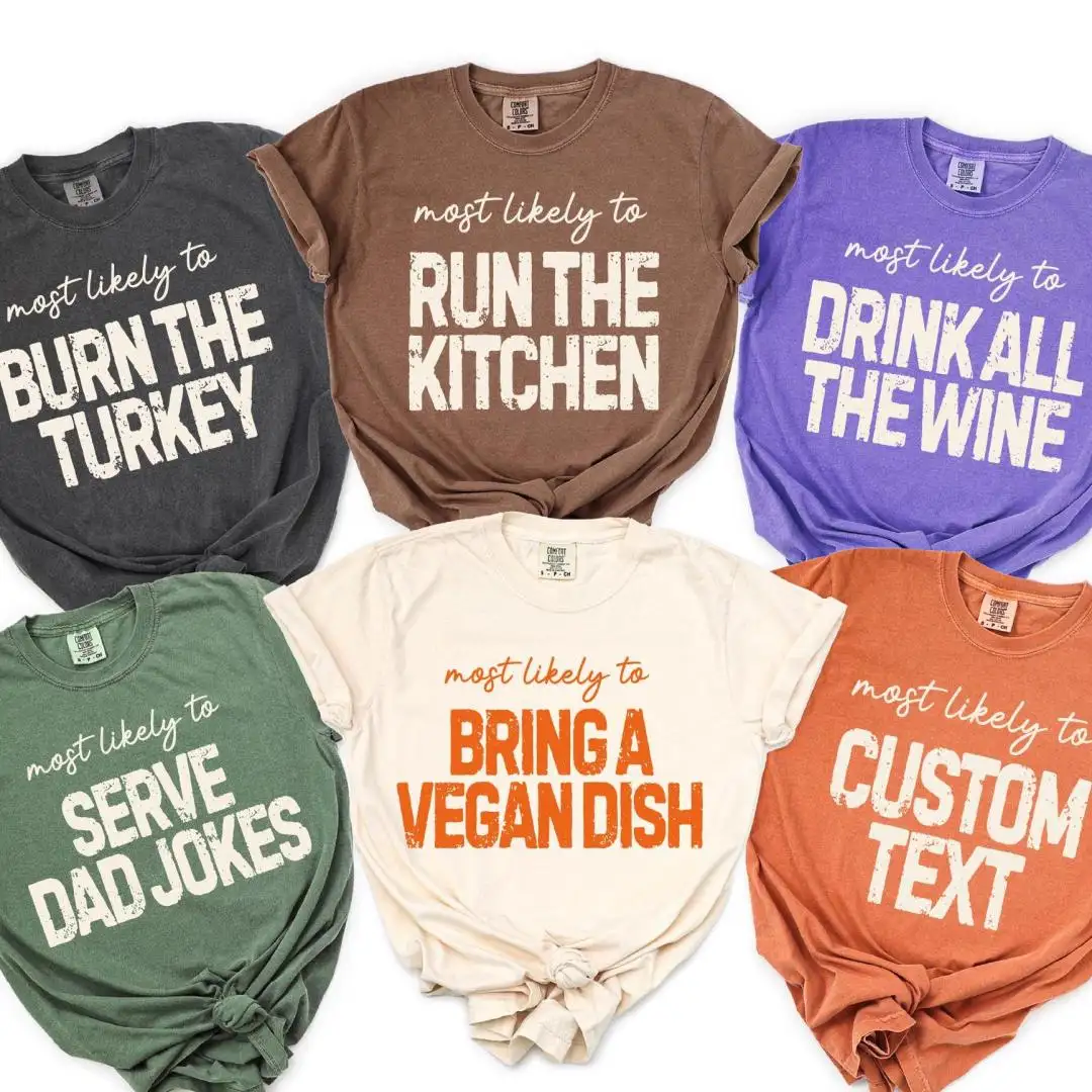 Comfort Colors® Most Likely To Thanksgiving Quotes Shirt, Customize Happy Thanksgiving Matching Shirt, Funny Thanksgiving Family Custom Tee