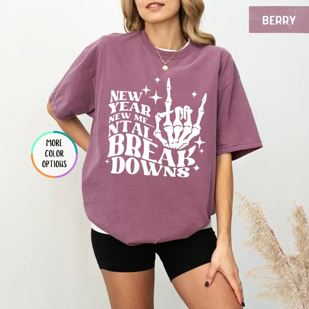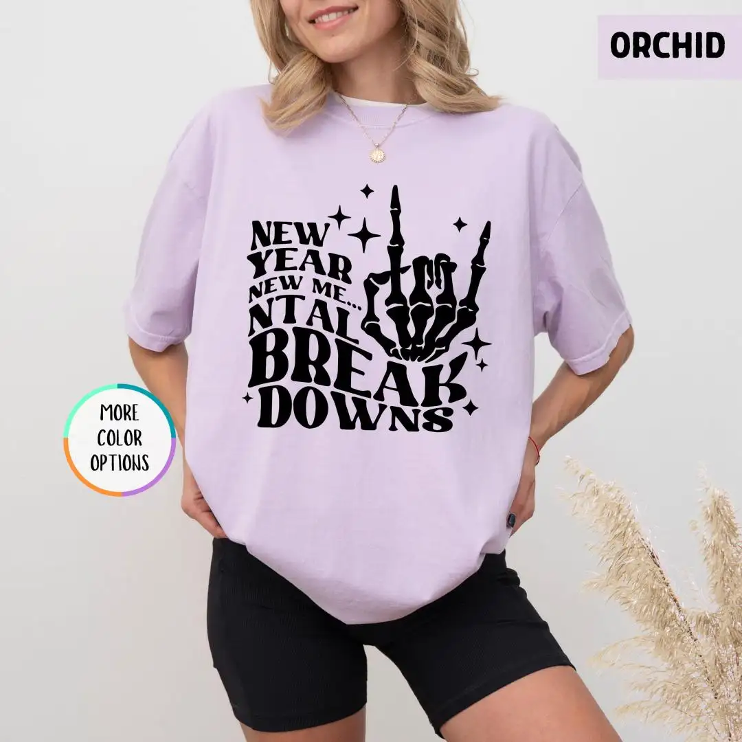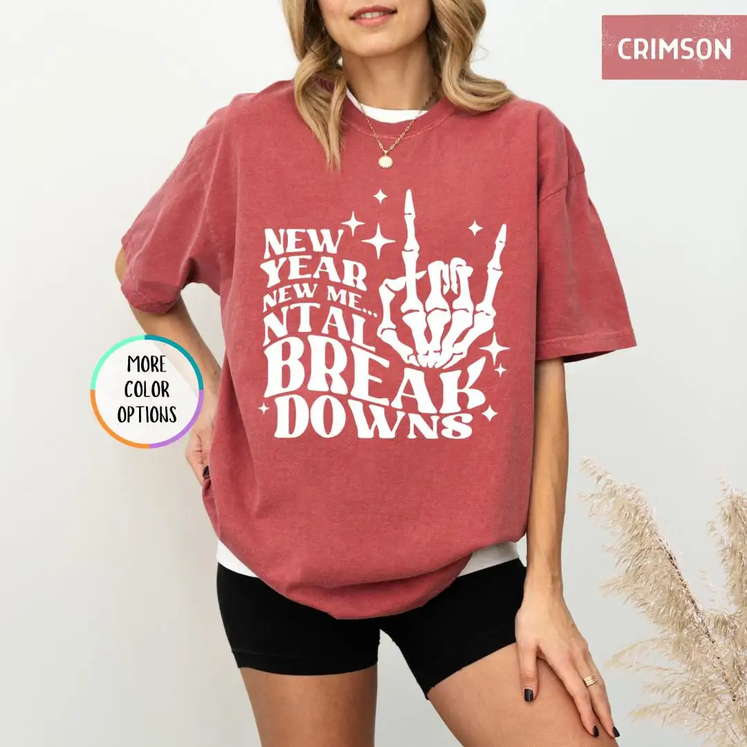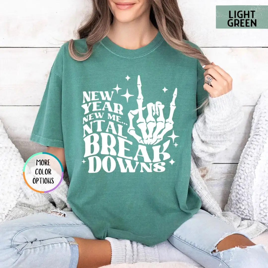 Review Comfort Colors New Year New Me Shirt, Christmas Skeleton, New Year Party Tee, Mental Breakdowns, Happy New Year Shirt, New Year Goals Shirt