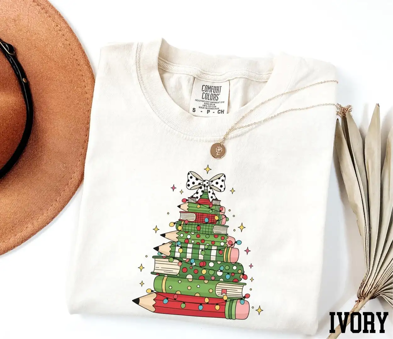 Review Comfort Colors® Pencil Christmas Tree Shirt, Christmas Gift for Teacher, Christmas Holiday Tee, Bookish Christmas Shirt, Teacher Life Shirt