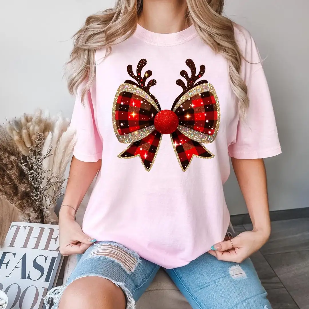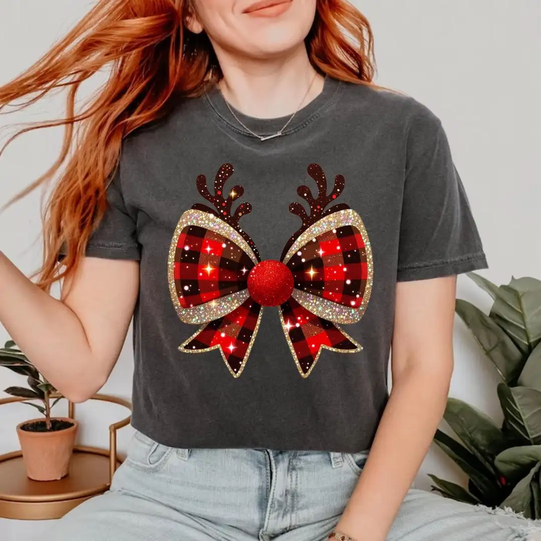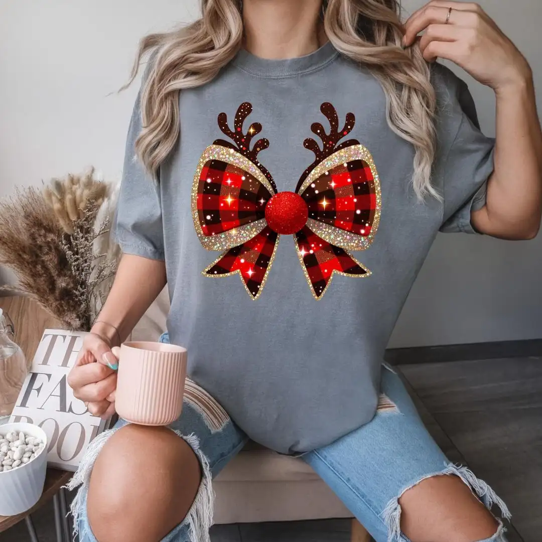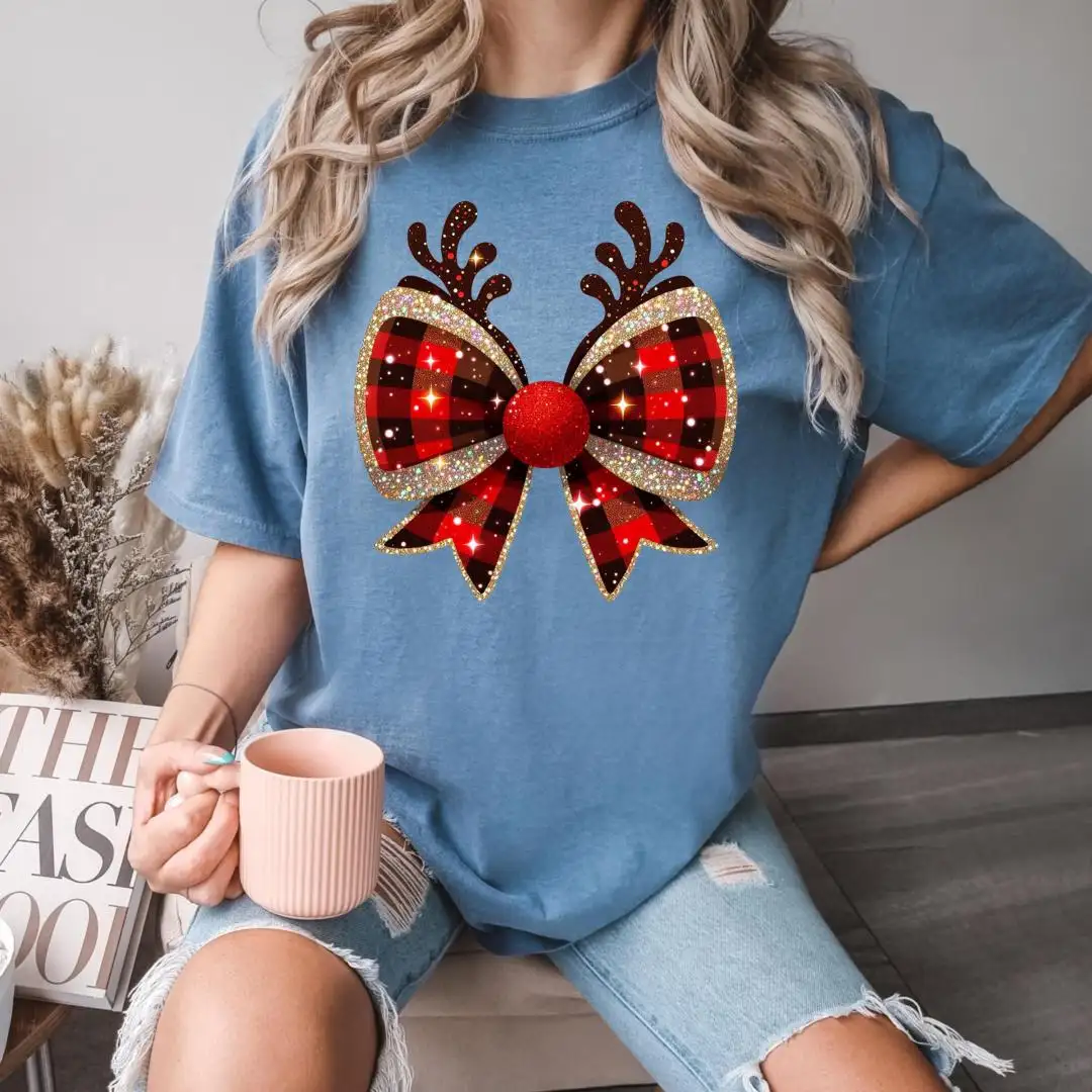 Comfort Colors Reindeer Bow Christmas Shirt Gift For Women