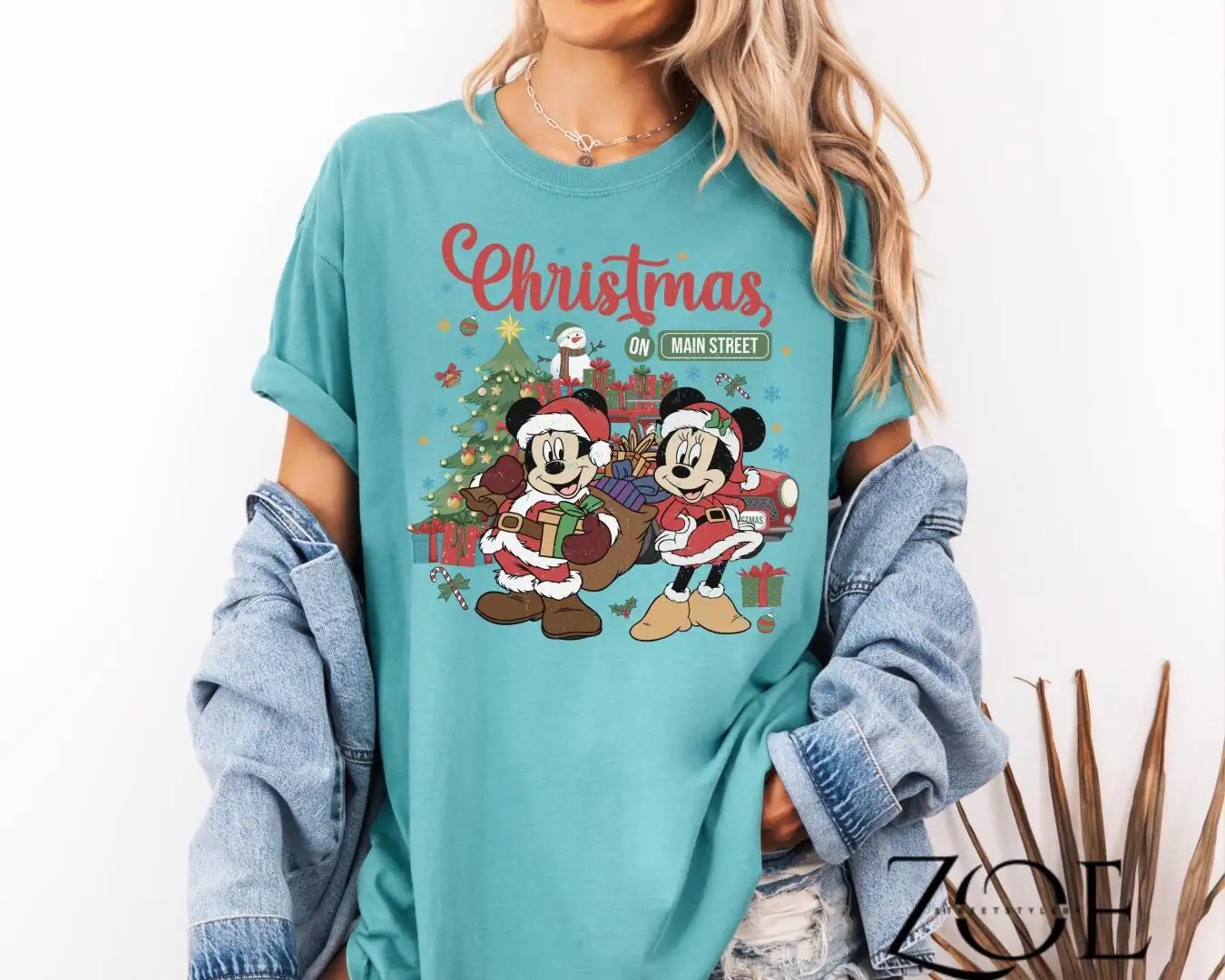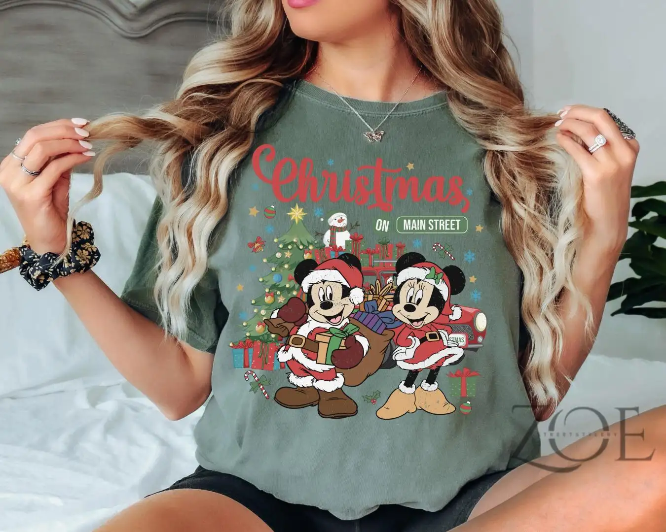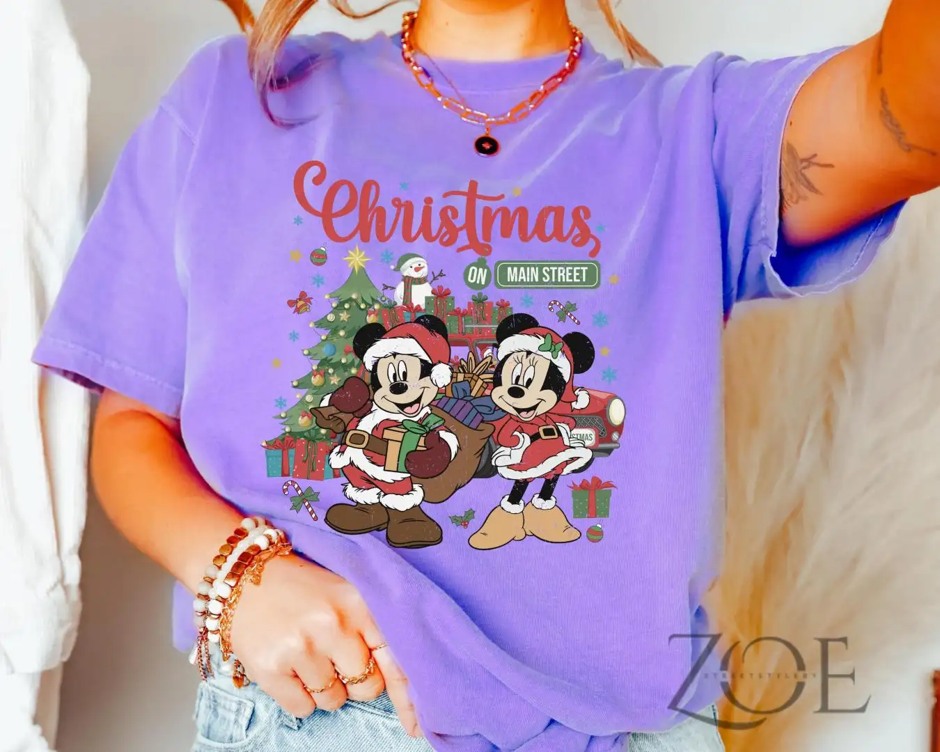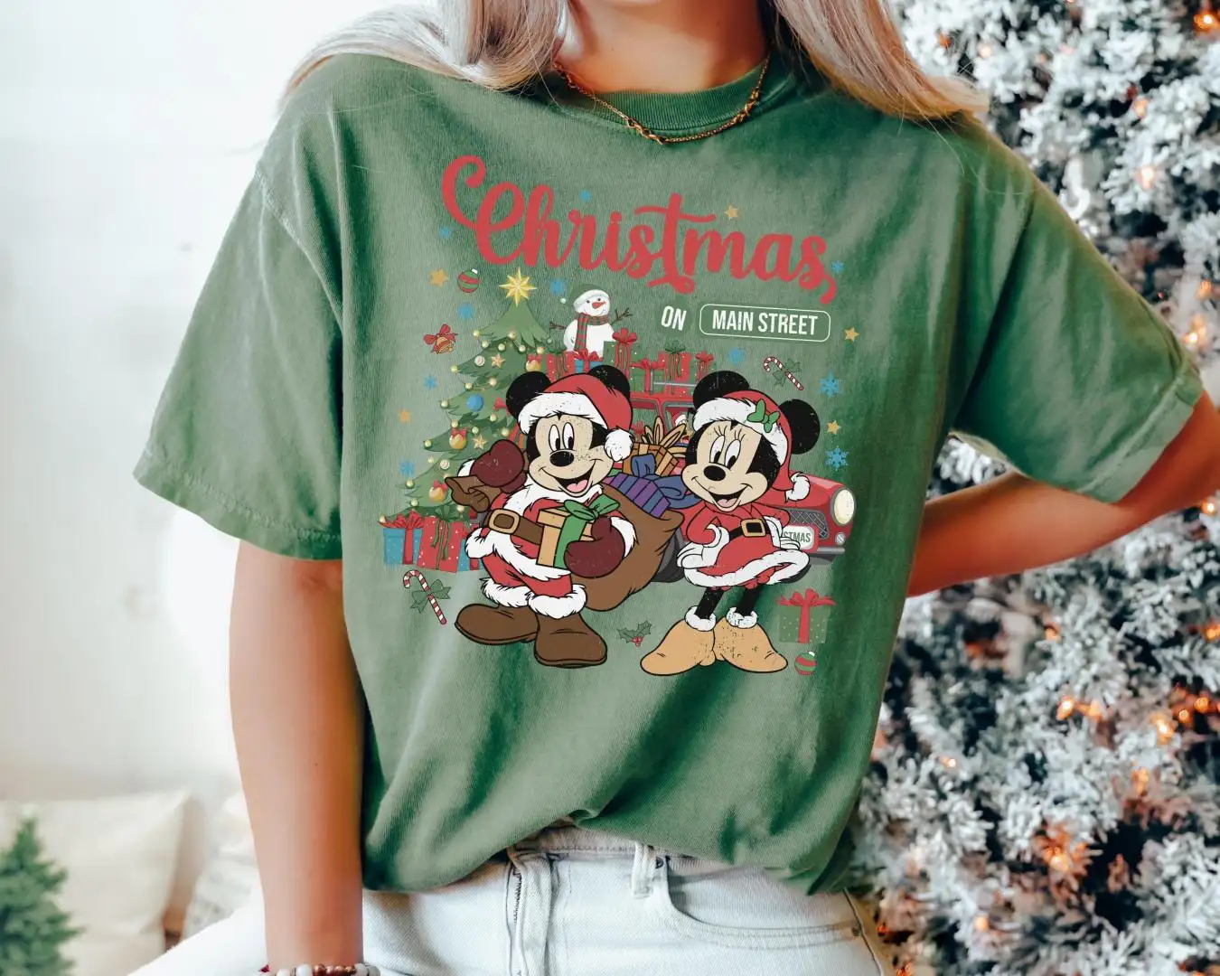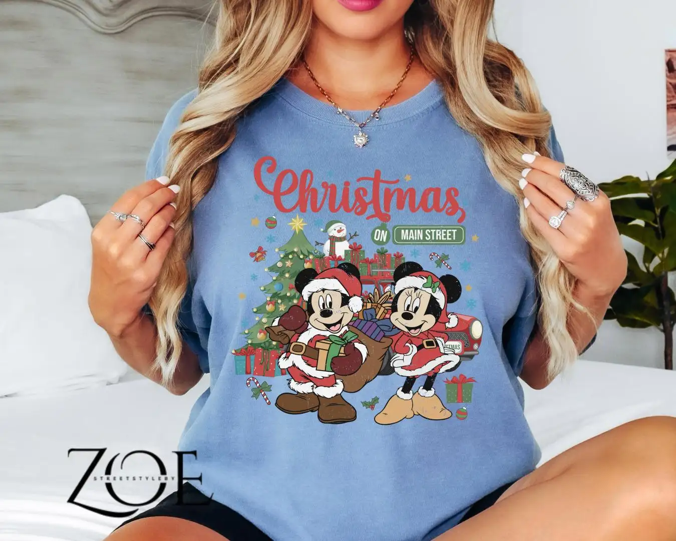 Comfort Colors Retro Disney Christmas On Main Street Shirt, Disney Mery Christmas Shirt, Mickey Minnie Christmas Shirt, Happy New Year Shirt