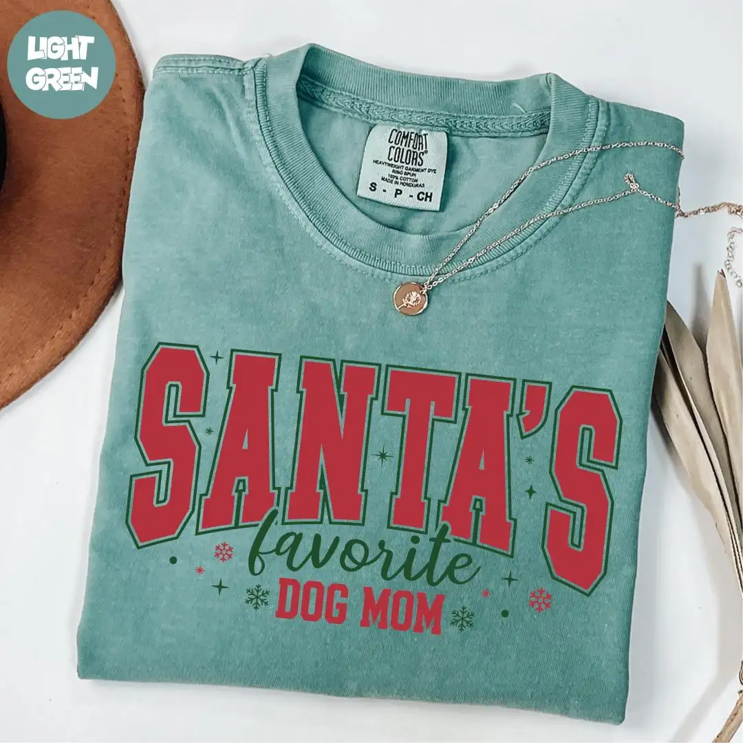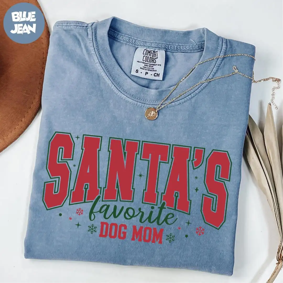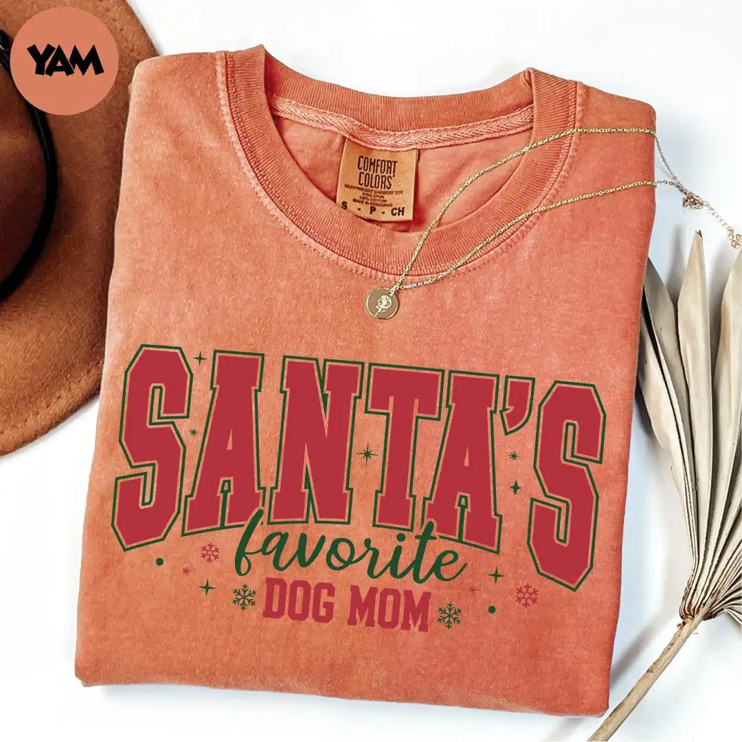 Comfort Colors® Santa's Favorite Dog Mom Shirt, Dog Lover Shirt, Xmas Gifts, Xmas Dog Mom Shirt, Christmas Mom Shirt, Funny Christmas Shirt
