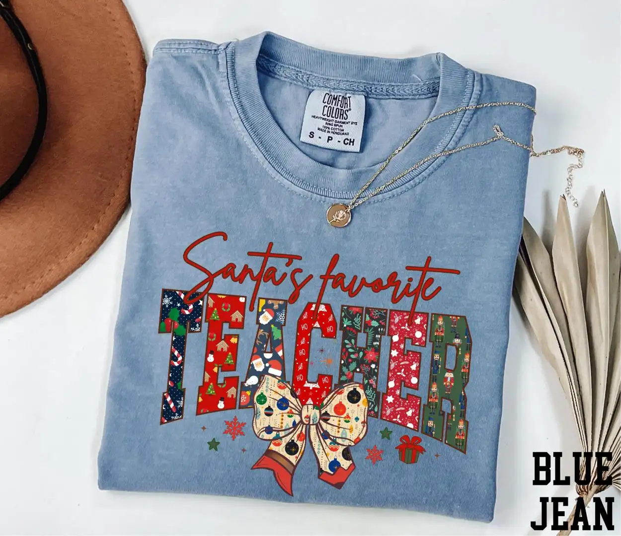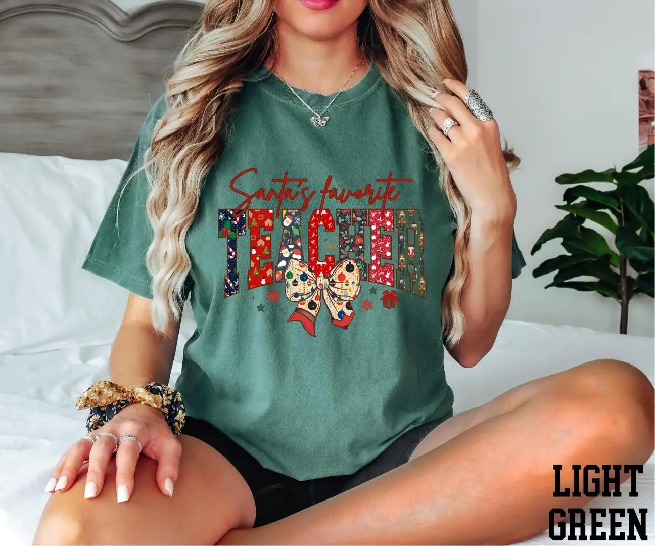 Comfort Colors® Santa's Favorite Teacher Shirt, Christmas Gift for Teacher, Teacher Appreciation, Christmas Teacher Shirt, Xmas Teacher Tee