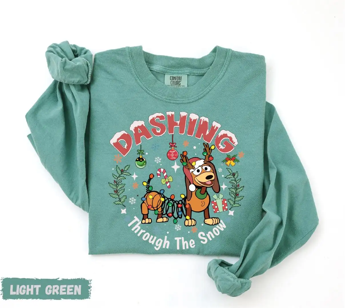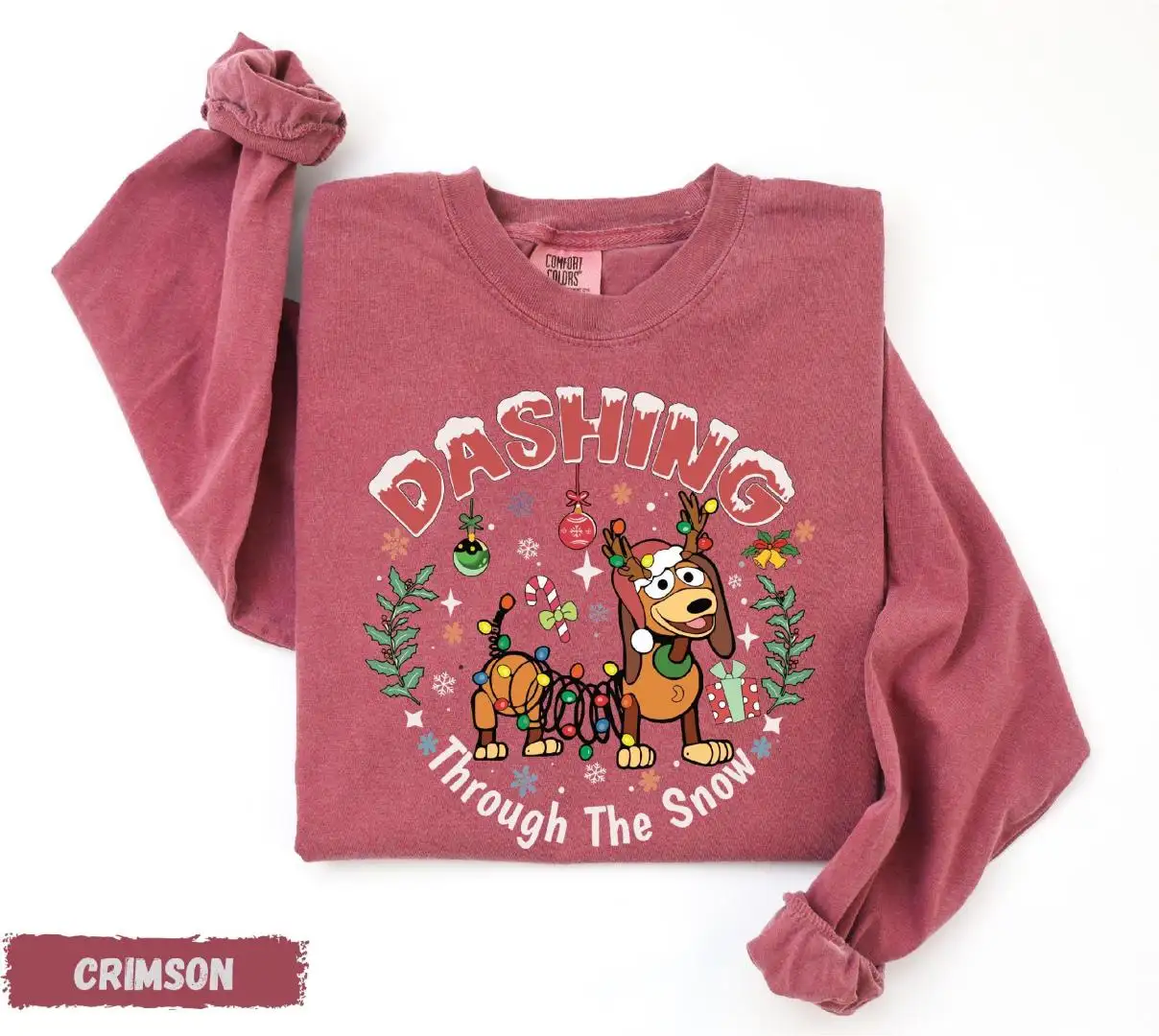 Review Comfort Colors® Slinky Dog Long Sleeve SHirt, Dashing Through The Snow Long Sleeve, Holiday Shirt, Christmas Gift, Toy Story Long Sleeve