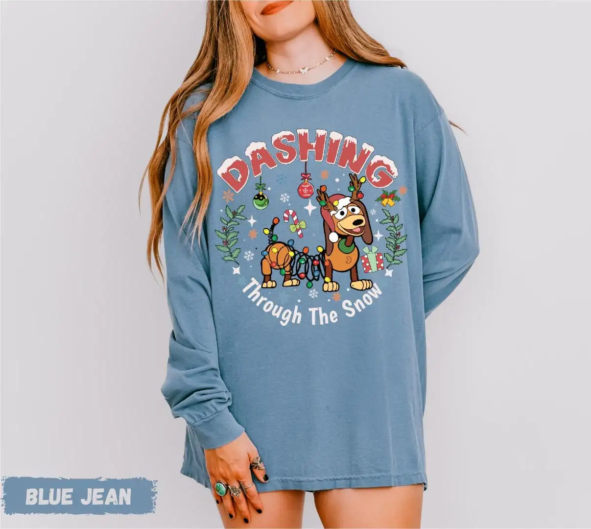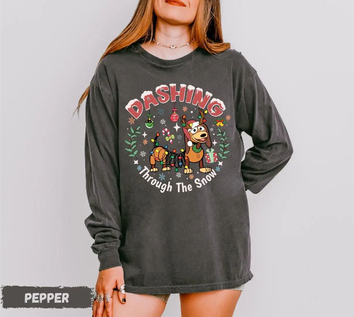 Comfort Colors® Slinky Dog Long Sleeve SHirt, Dashing Through The Snow Long Sleeve, Holiday Shirt, Christmas Gift, Toy Story Long Sleeve
