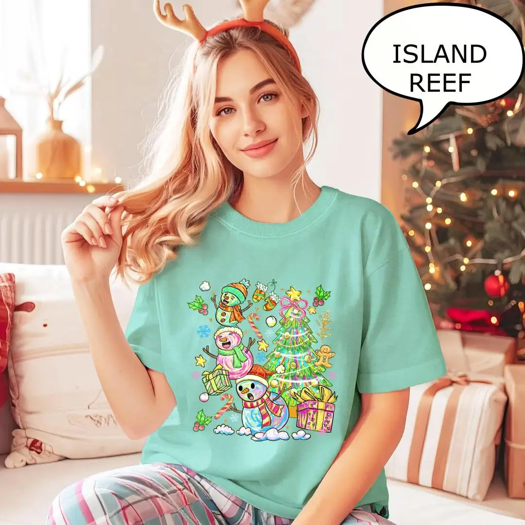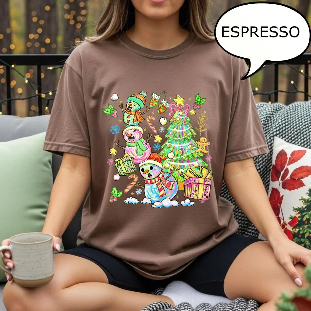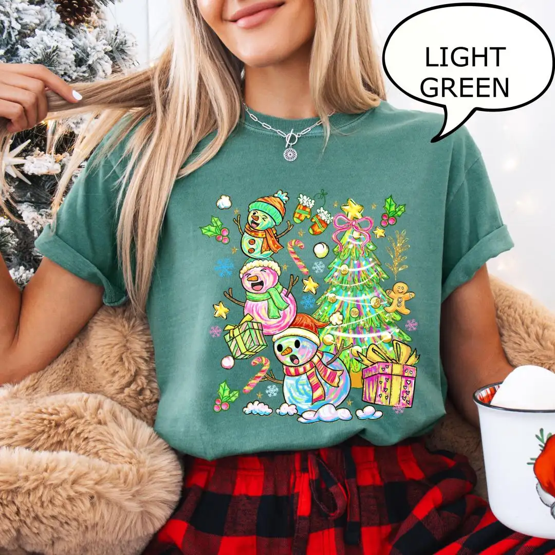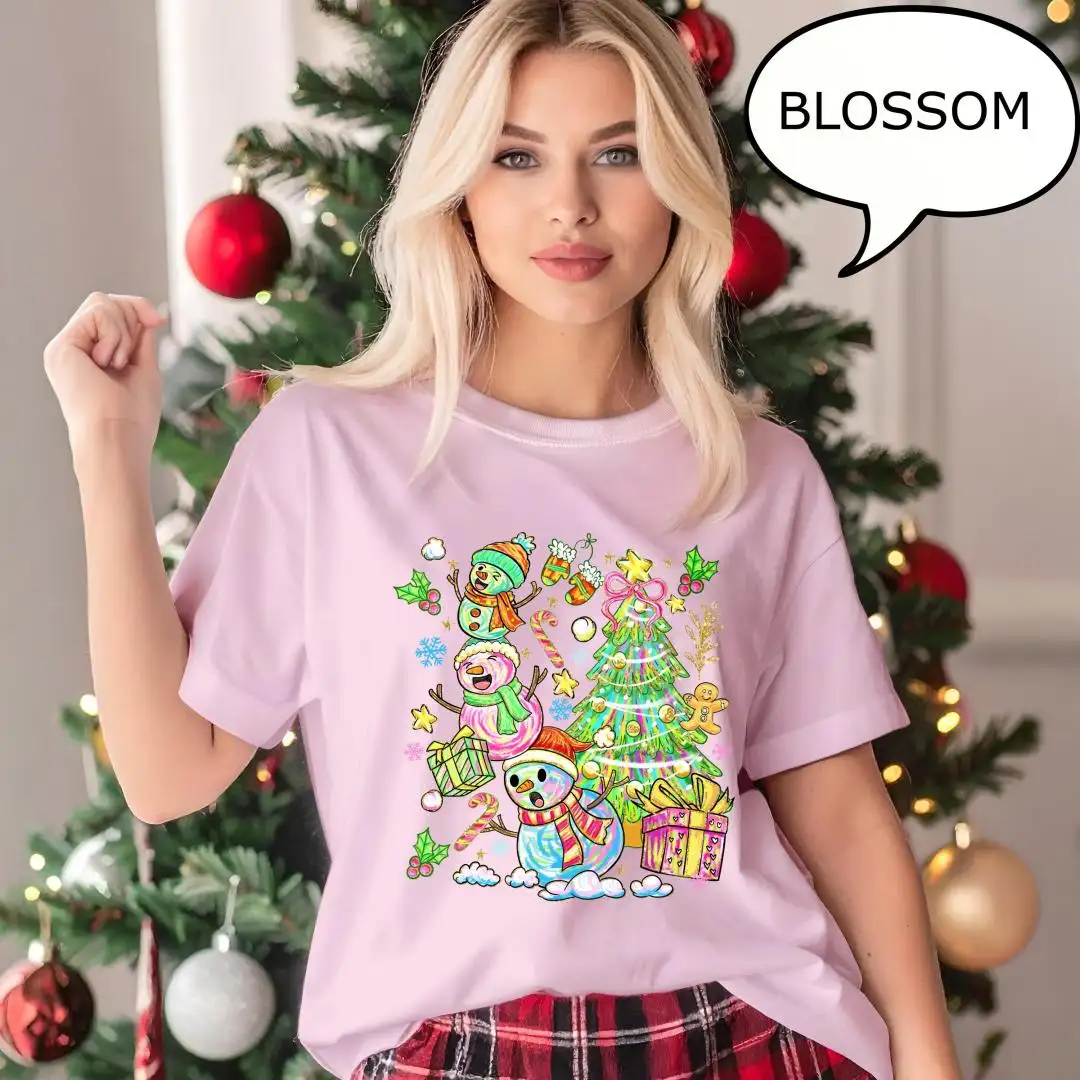 Comfort Colors Snowman Christmas Shirt for Women