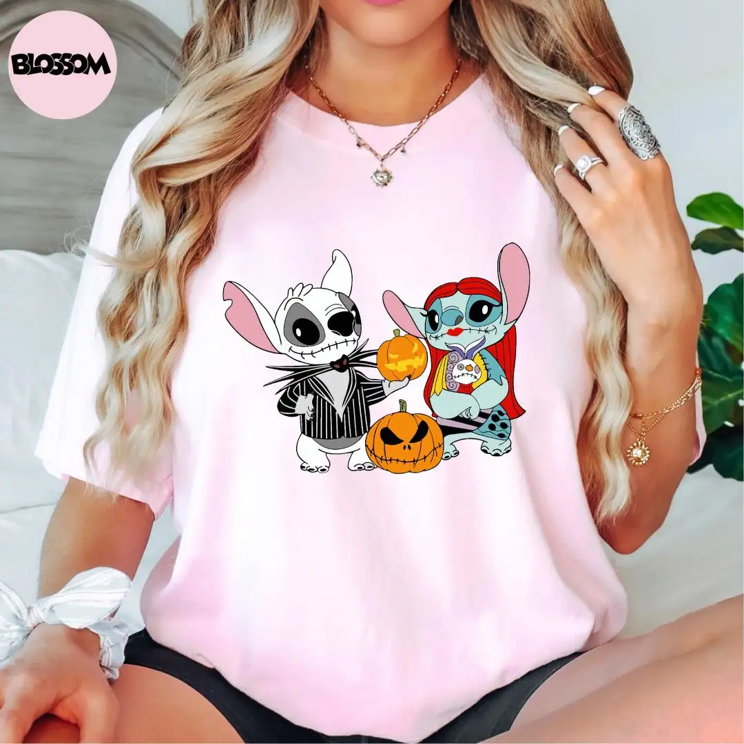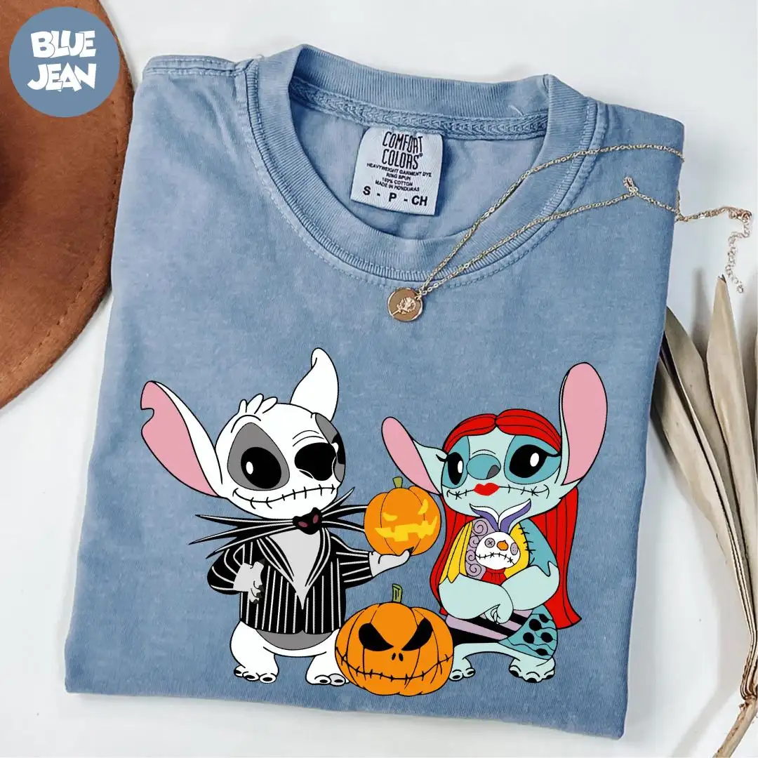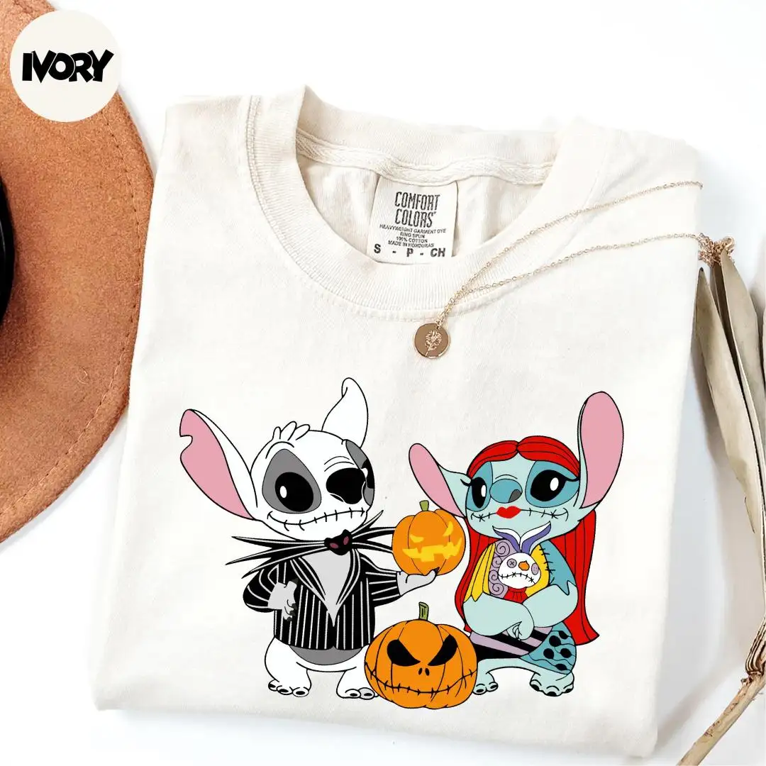 Comfort Colors® Stitch and Angel Halloween Shirt, Jack and Sally Shirt, Disney Halloween Shirt, The Nightmare Before Christmas Shirt