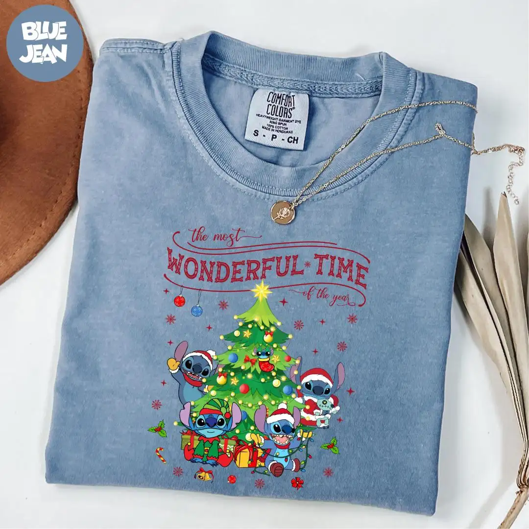 Comfort Colors® Stitch The Most Wonderful Time of the Year Shirt, Christmas Party Shirt, Stitch Xmas Holiday Shirt, Christmas Season Shirt
