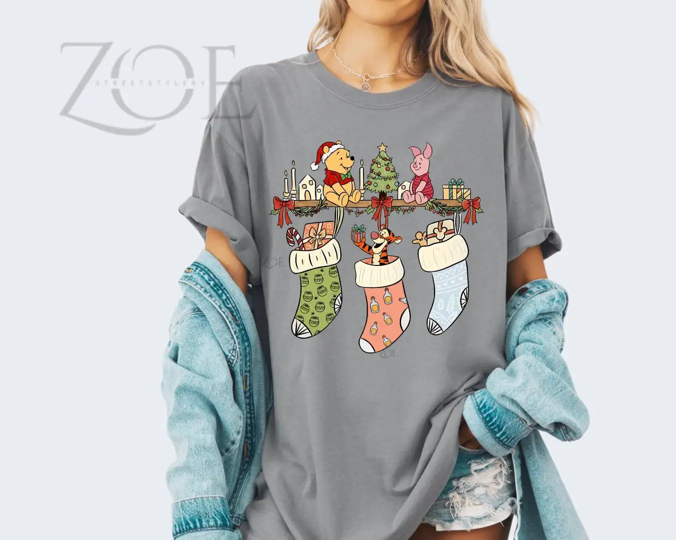 Comfort Colors® The Pooh and friends Xmas Tee Disney Winnie Christmas Shirt Cute Disney Christmas Trip Shirt Magic Kingdom ChristmasLights