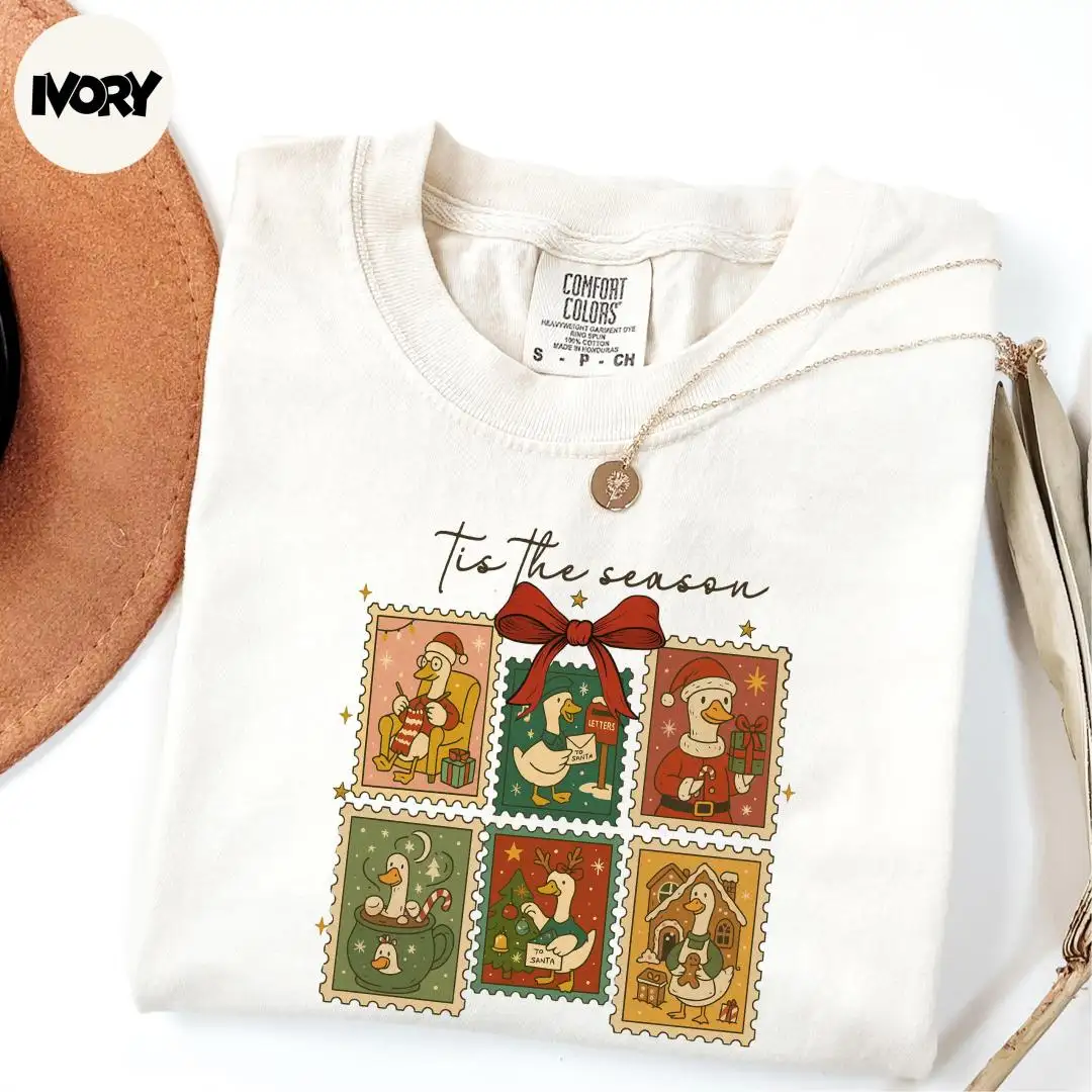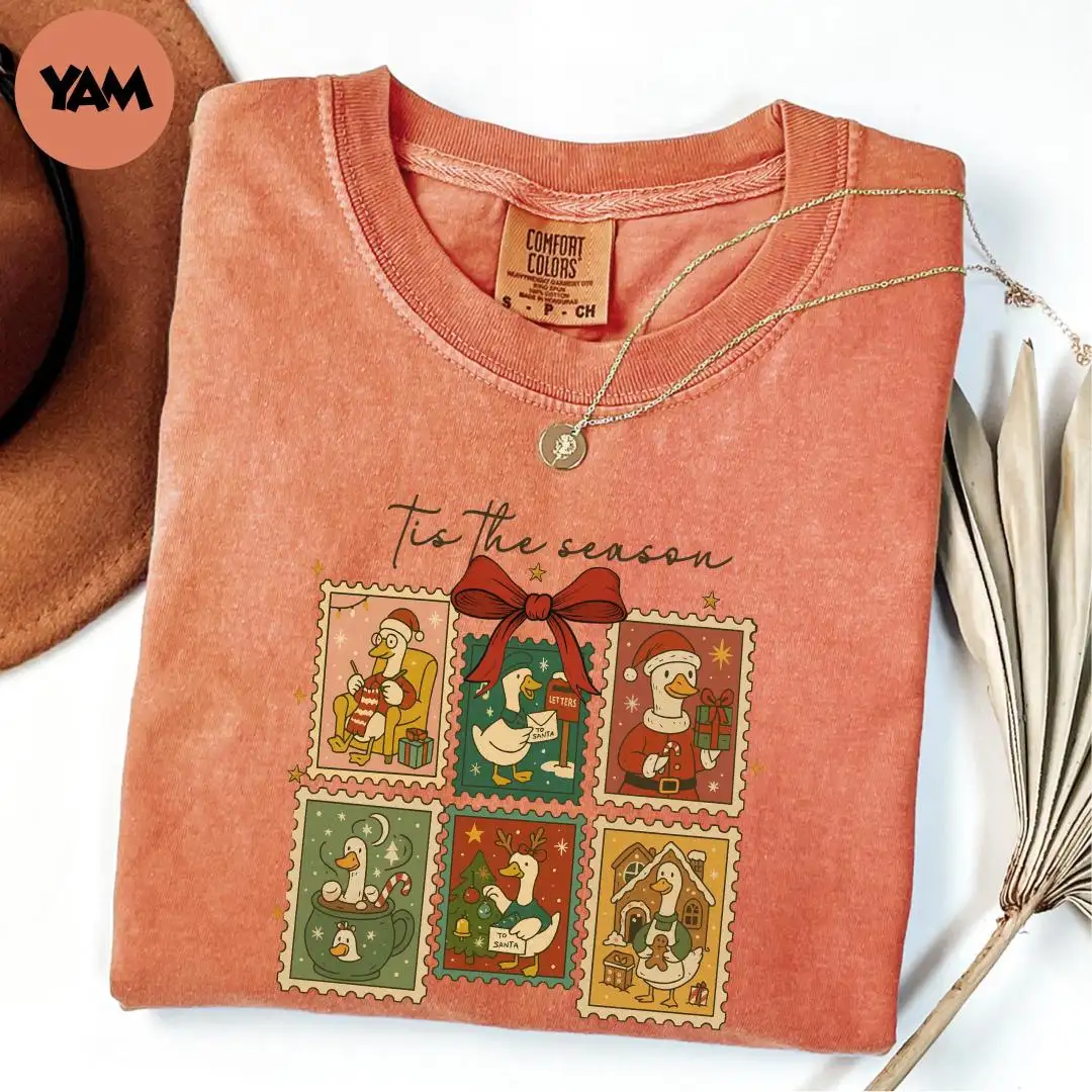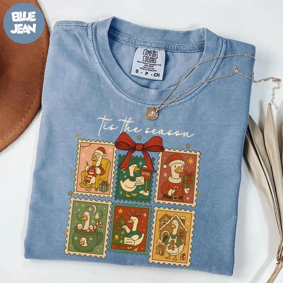 Comfort Colors® Tis The Season Shirt, Christmas Shirt, Funny Goose Shirt, Xmas Holiday Shirt, Santa Goose Shirt, Silly Goose Christmas Shirt