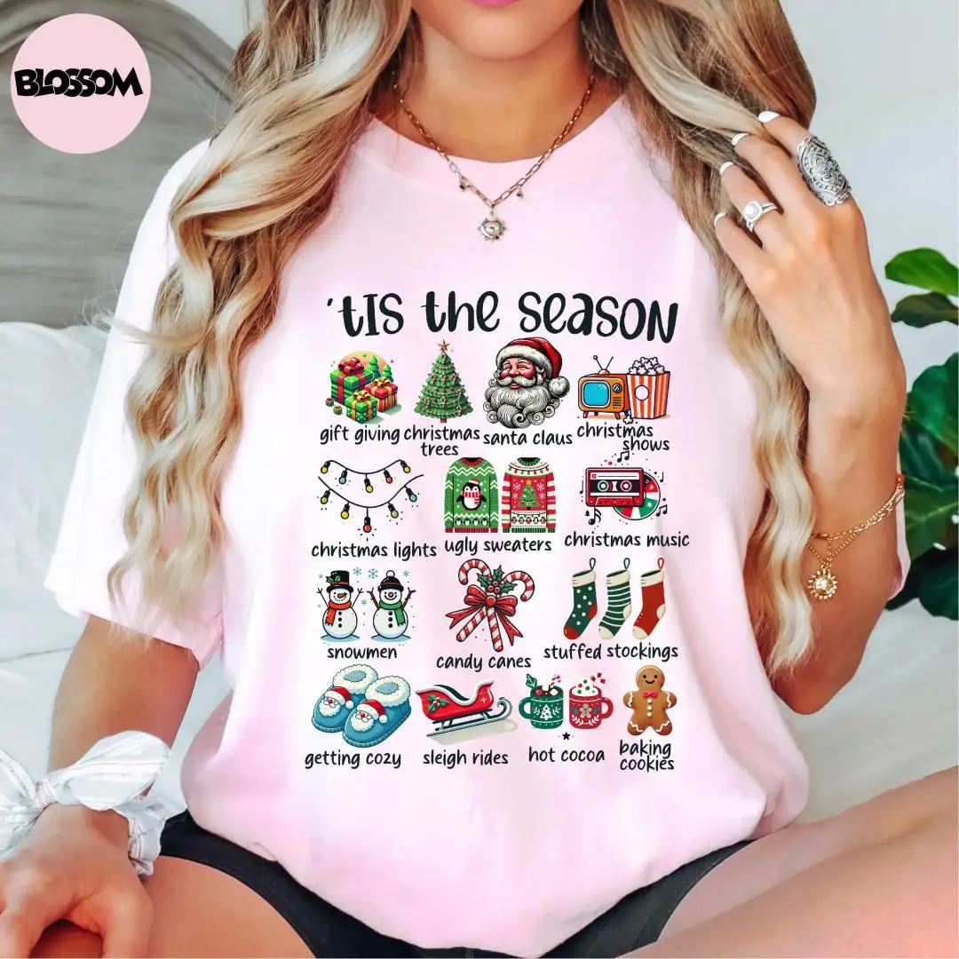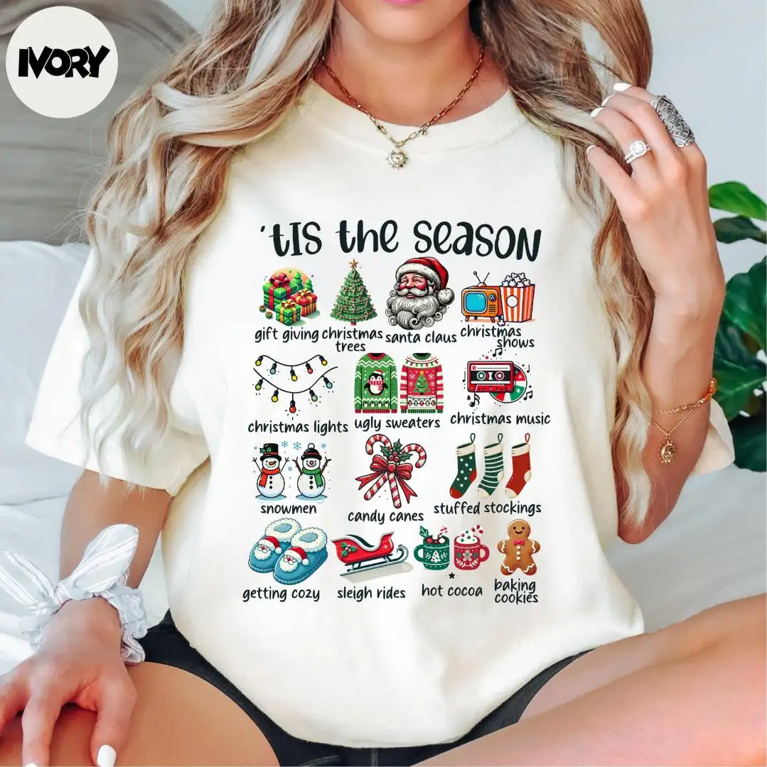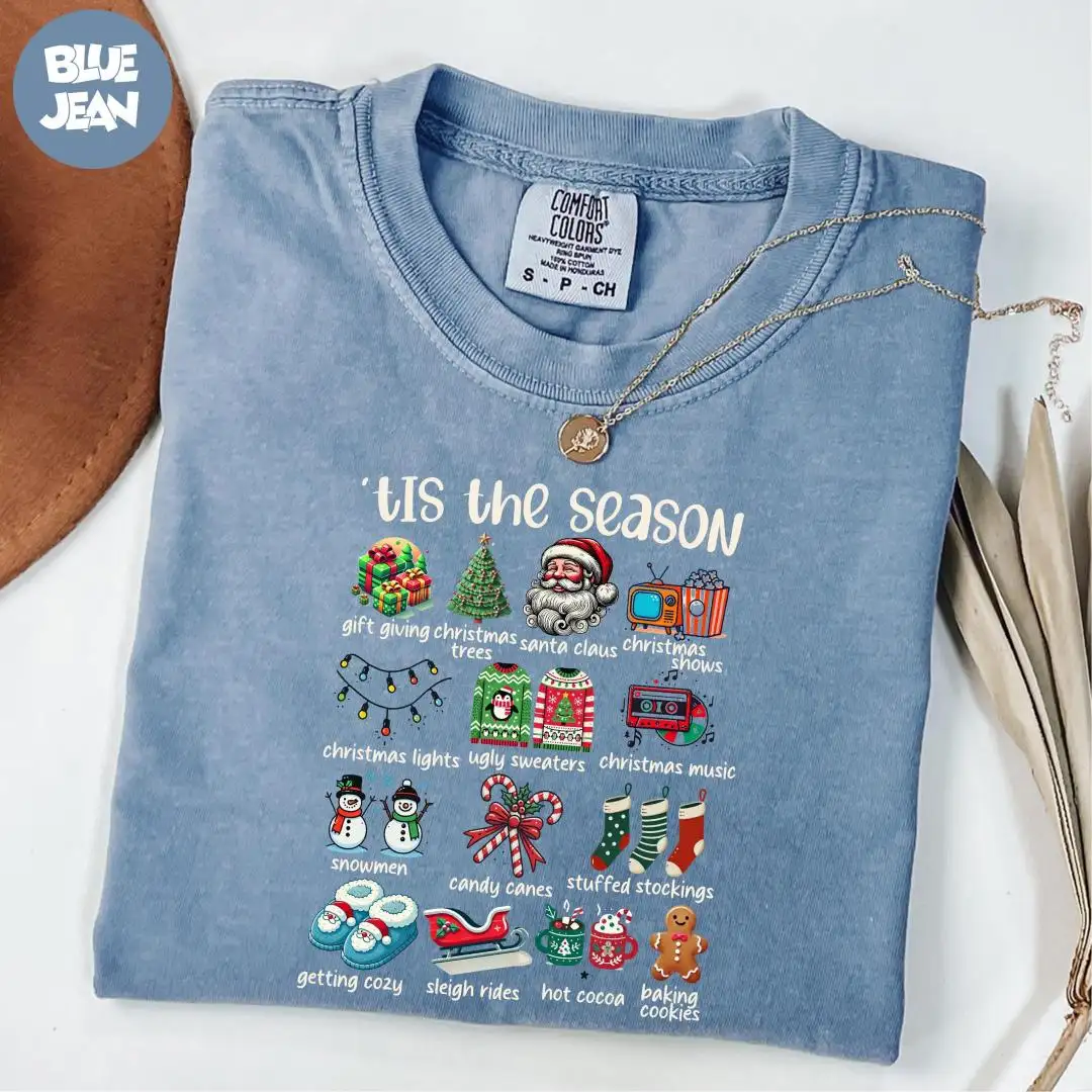 Comfort Colors® Tis The Season Shirt, Christmas Vibes Shirt, Santa Claus Shirt, Snowman Shirt, Christmas Shirt, Family Christmas Shirt