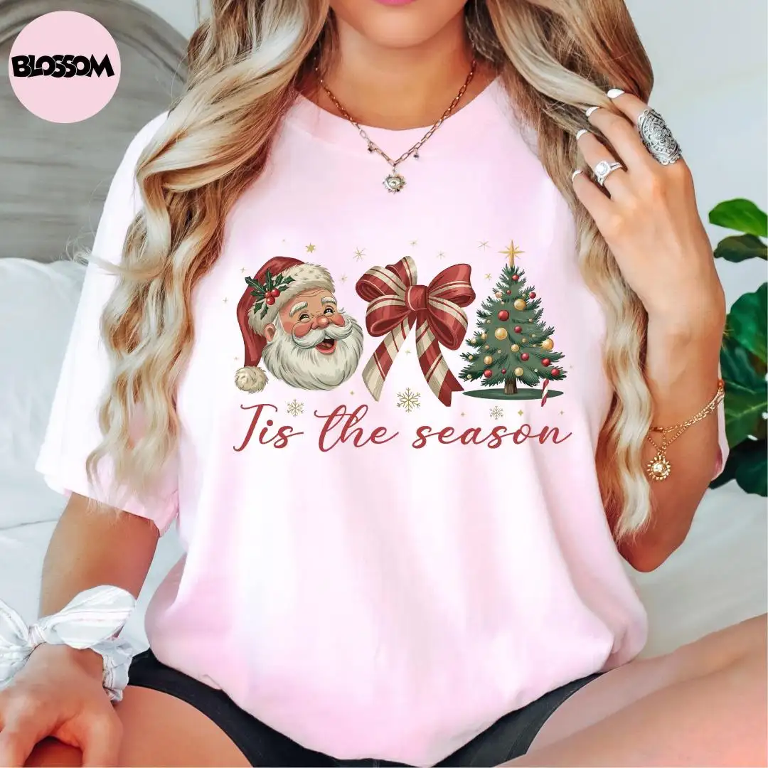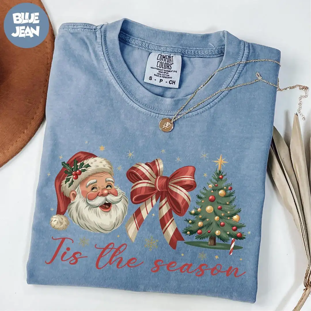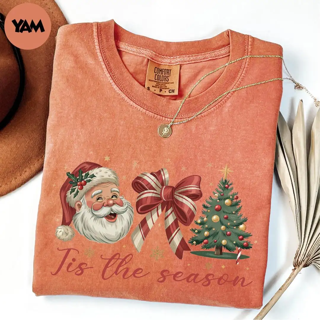 Comfort Colors® Tis The Season Shirt, Santa Claus Shirt, Christmas Tree Shirt, Christmas Coquette Shirt, Christmas Shirt, Xmas Party Shirt
