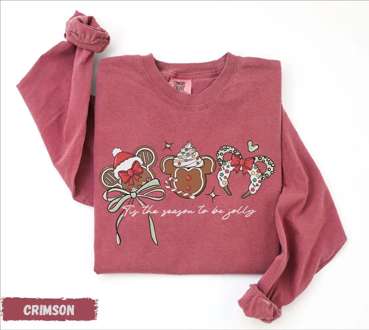 Comfort Colors® Tis The Season To Be Jolly Long Sleeve, Disney Snacks Shirt, Disneyland Trip Long Sleeve, Mickey Cookie Shirt