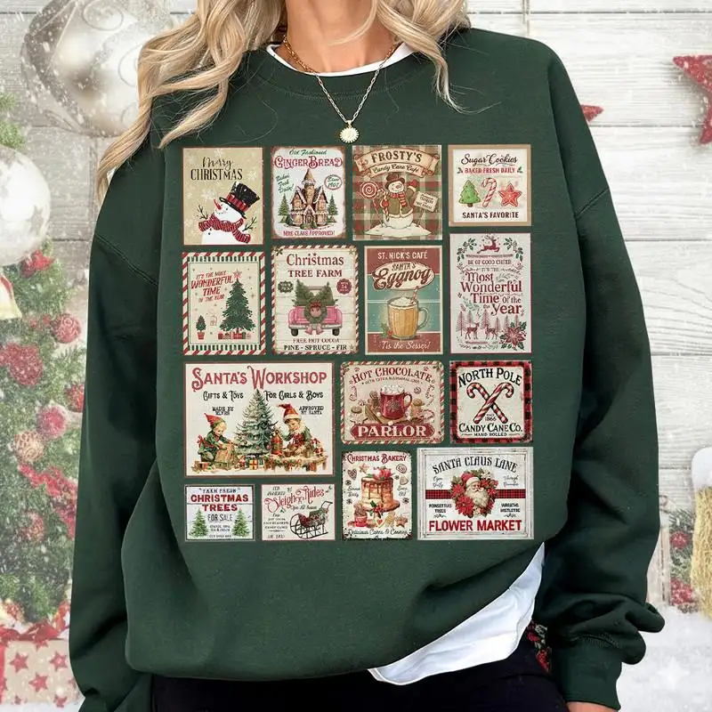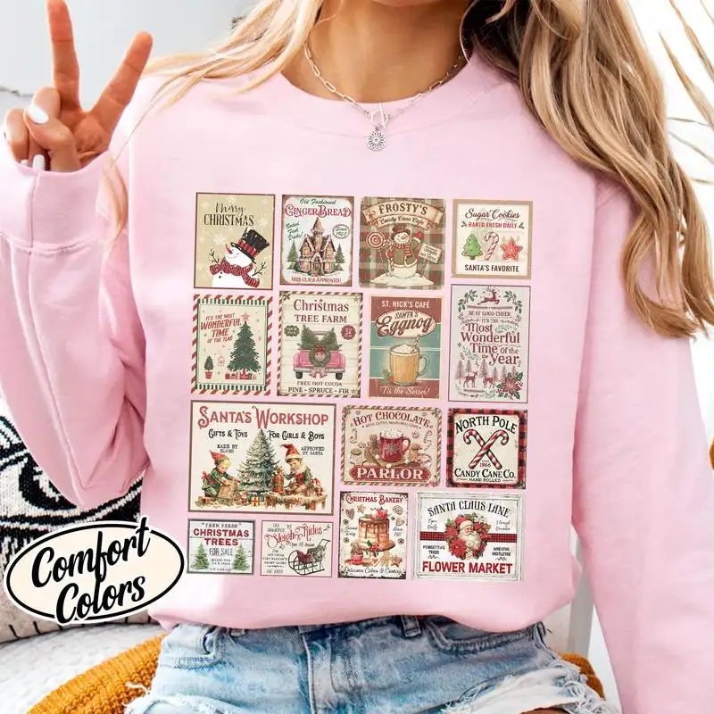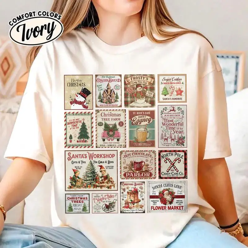 Comfort Colors Vintage Christmas Shirt Womens Christmas Vibes Shirt Christmas Stamps TShirt Retro Holiday Party Tee Festive Christmas Tee 08