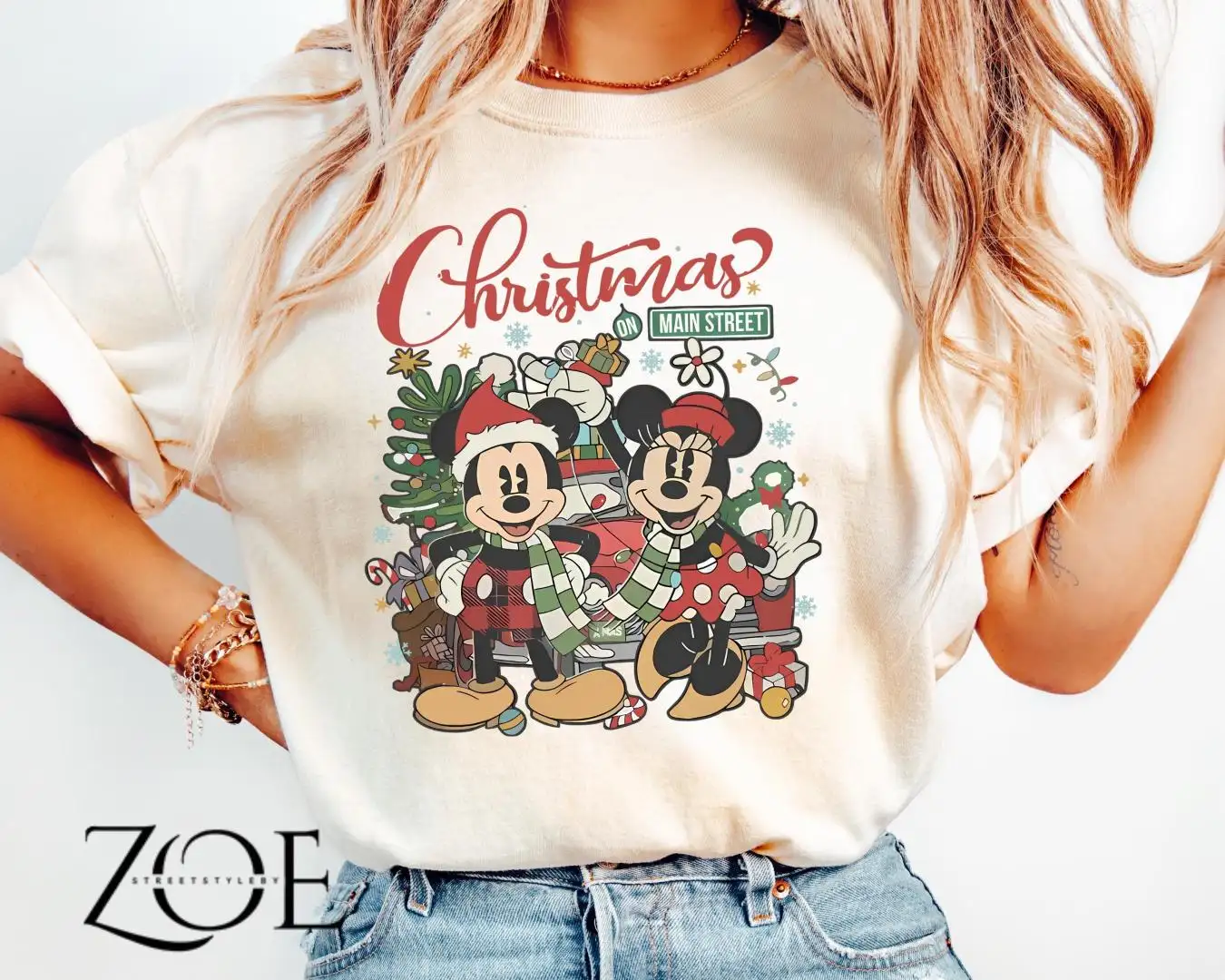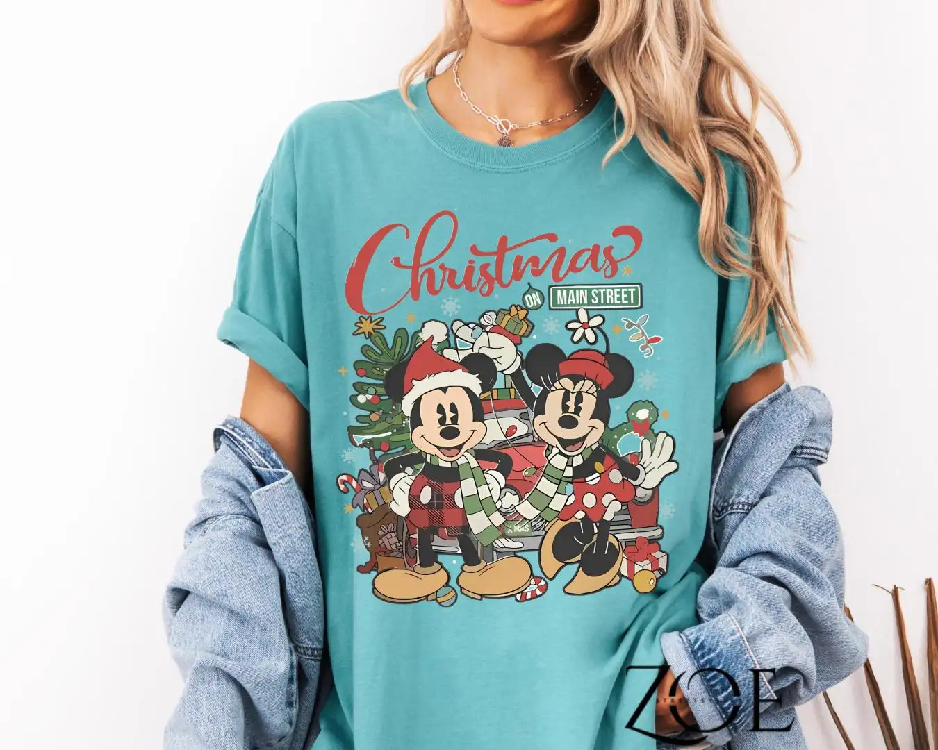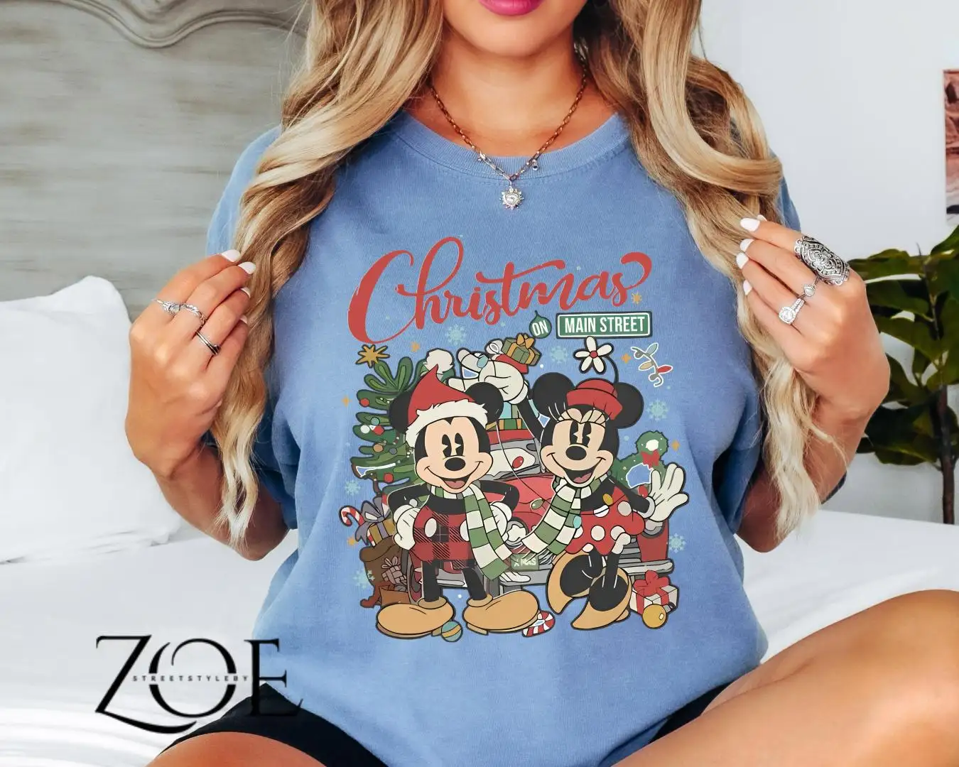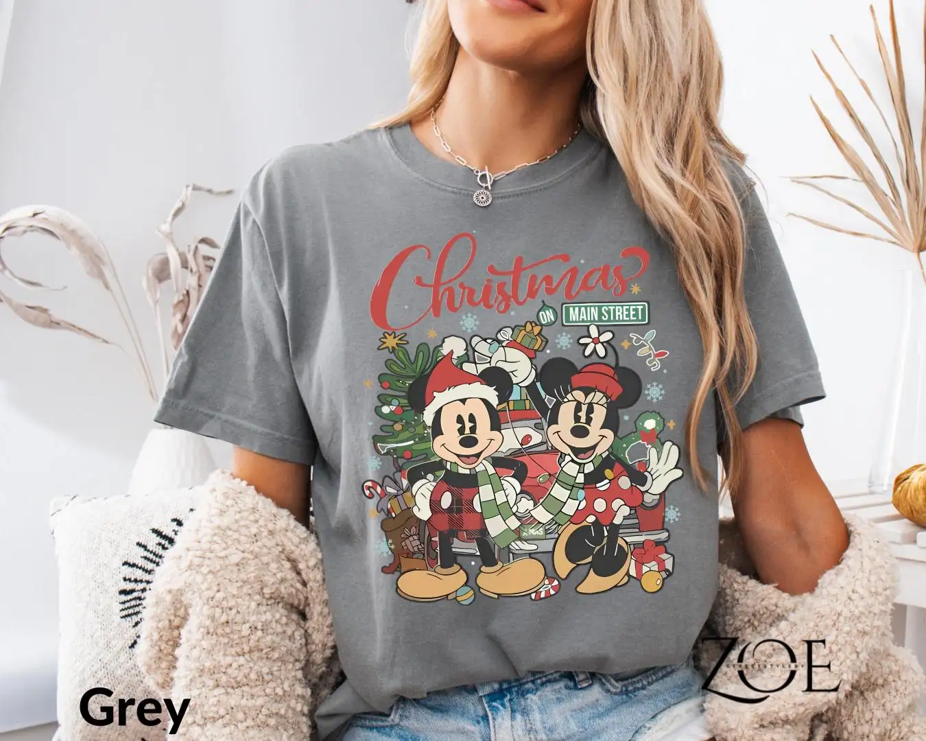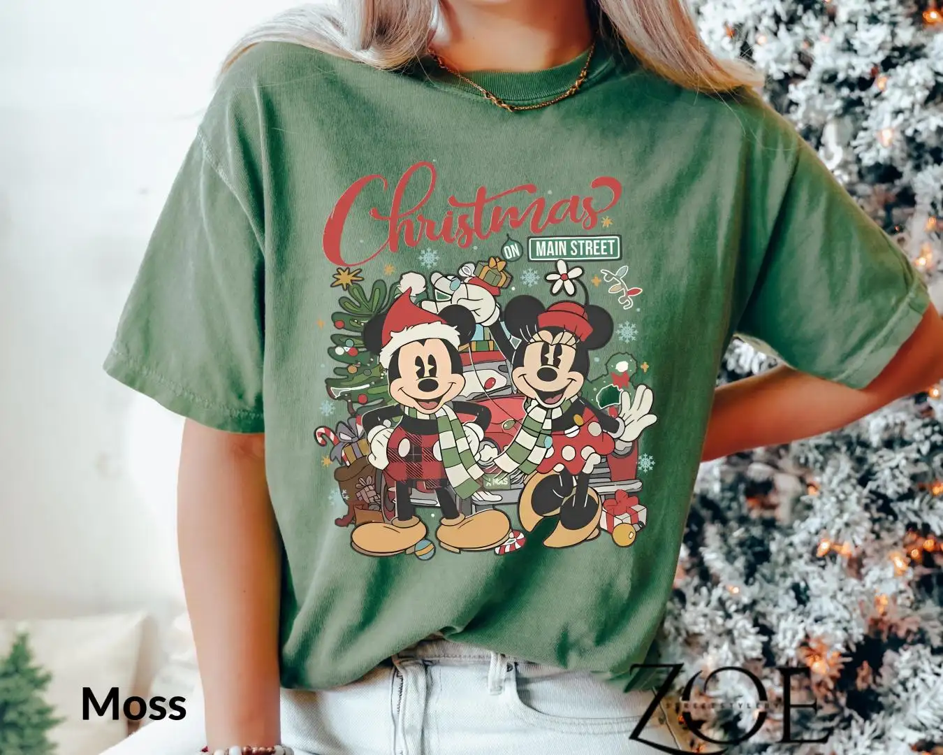 Comfort Colors Vintage Mickey Minnie Disney Christmas On Main Street Shirt, Disney Christmas Mickey Shirt, Mickey's Very Merry Christmas Party