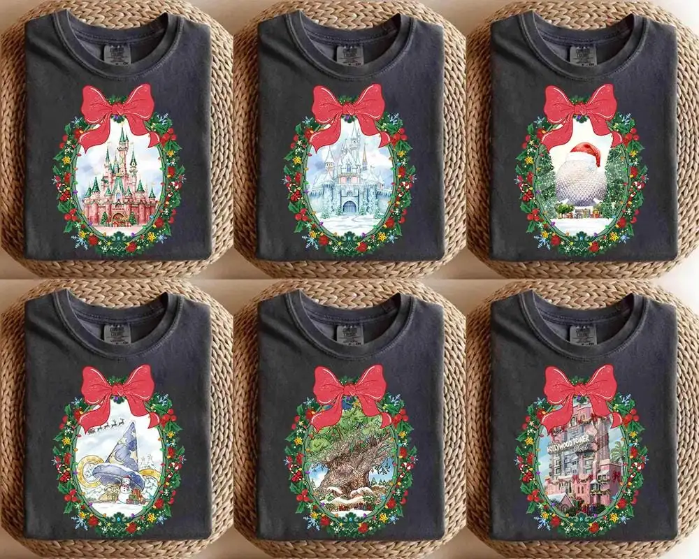 Review Comfort Colors Walt DisneyWorld Christmas Coquette Bow Shirt, Disneyland Family Holiday Vacation Trip, Mickey's Very Merry Christmas Party
