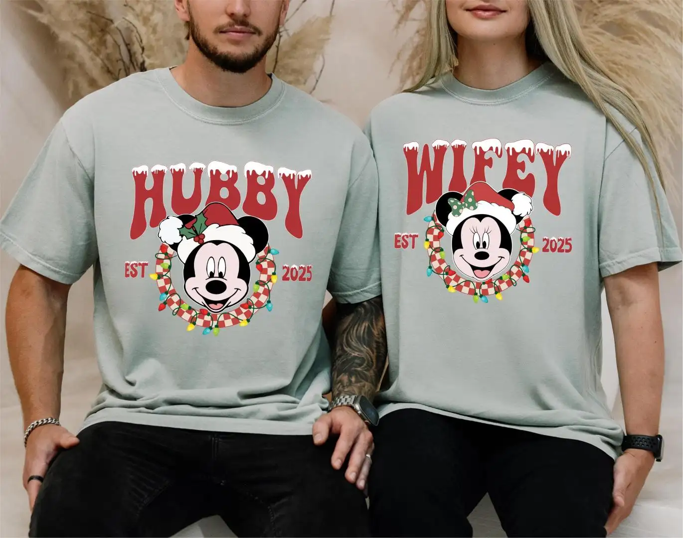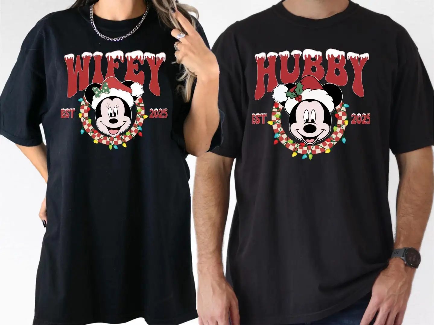 Review Comfort Colors® Wifey Hubby Christmas Shirt, Disneyland Honeymoon Winter Trip Tee, X-Mas Mickey Hubby Sweatshirt, Christmas Minnie Wifey Tee