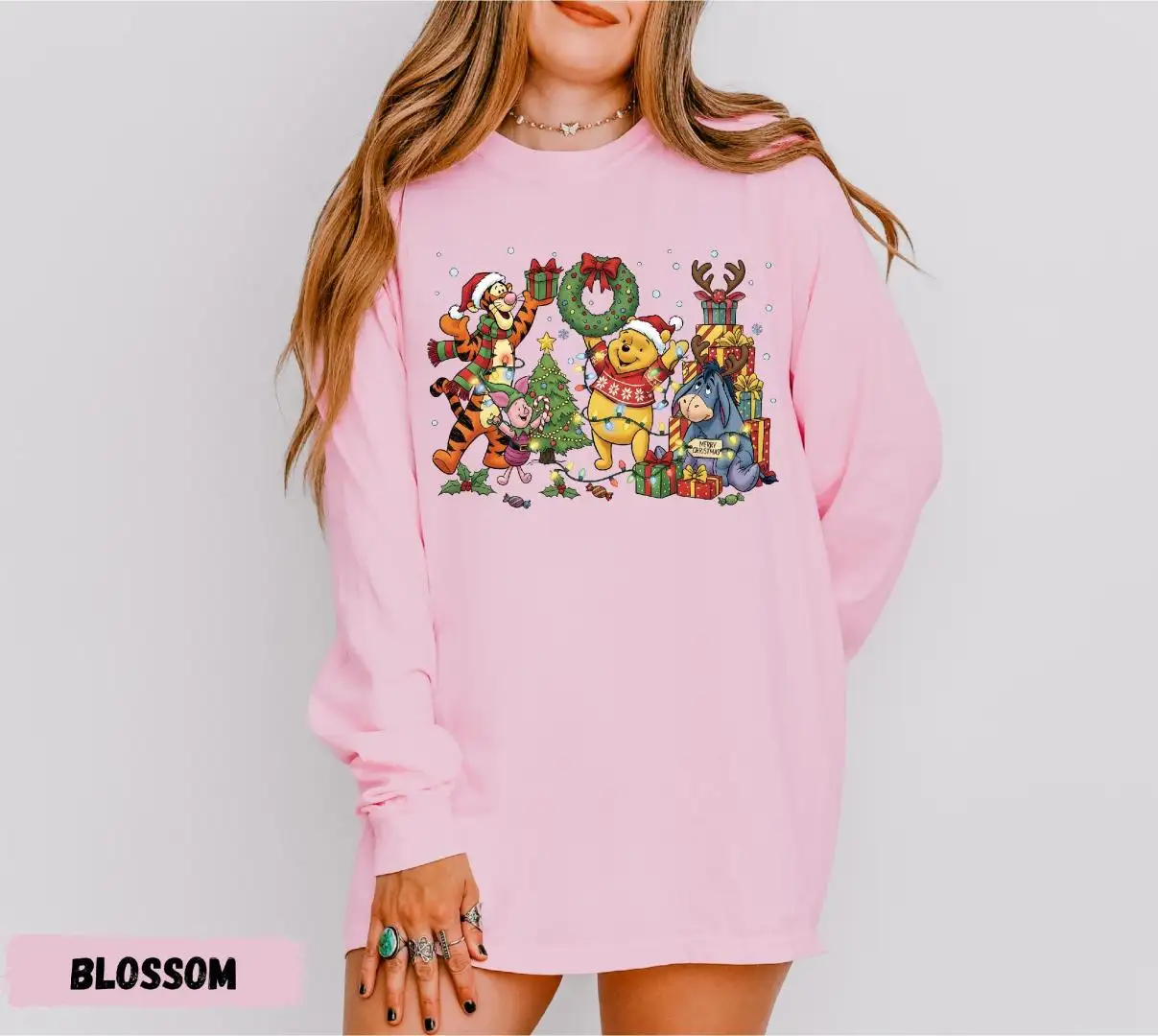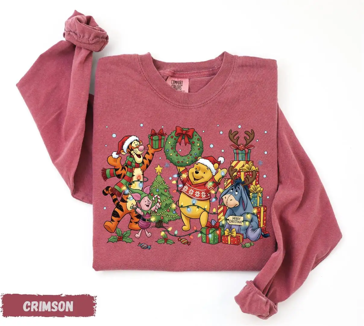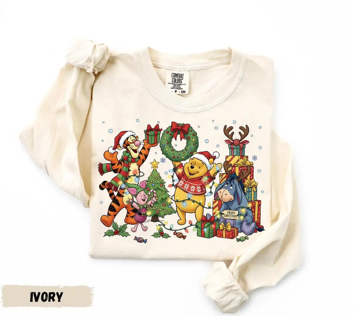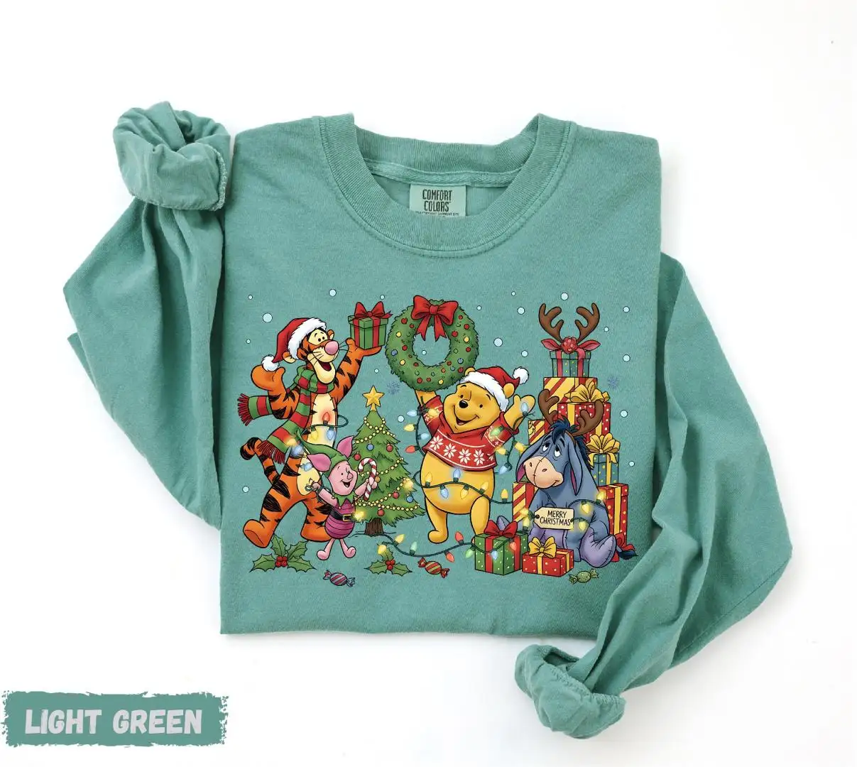 Comfort Colors® Winnie The Pooh Long Sleeve Shirt, Pooh Christmas Shirt, Disney Xmas Holiday Long Sleeve, Pooh and Friends Long Sleeve
