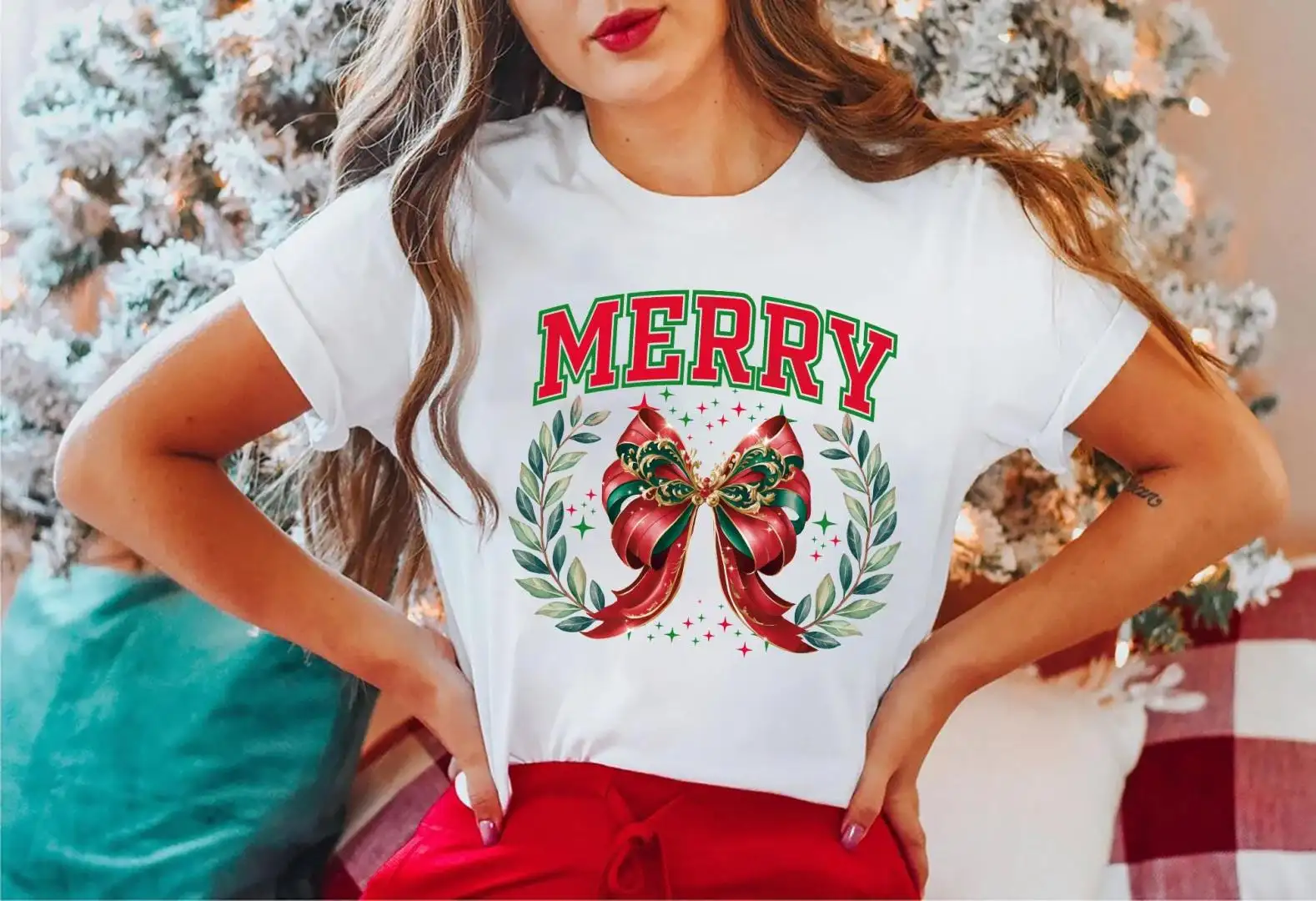 Coquette Bow Christmas Shirt for Holiday Parties