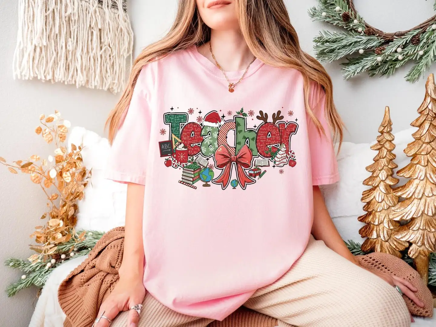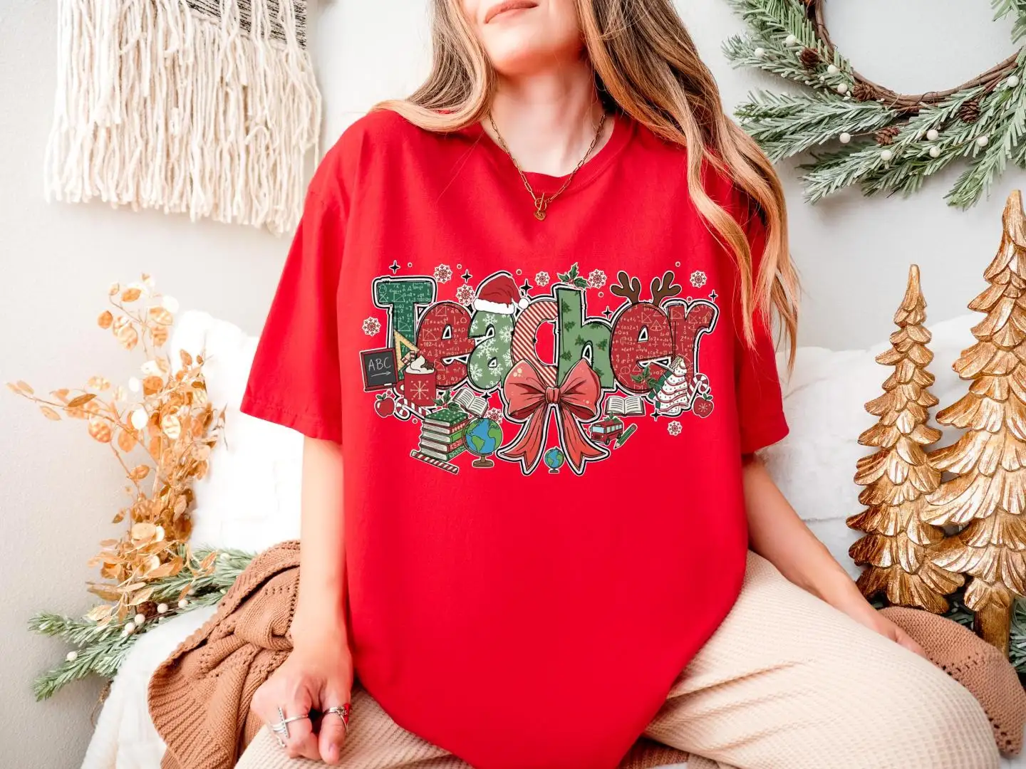 Review Coquette Bow Christmas Teacher Shirt, Xmas Holiday Teach Hoodie, First Grade Teacher Xmas Gift, Xmas Teacher Life Sweater, Xmas School Tee
