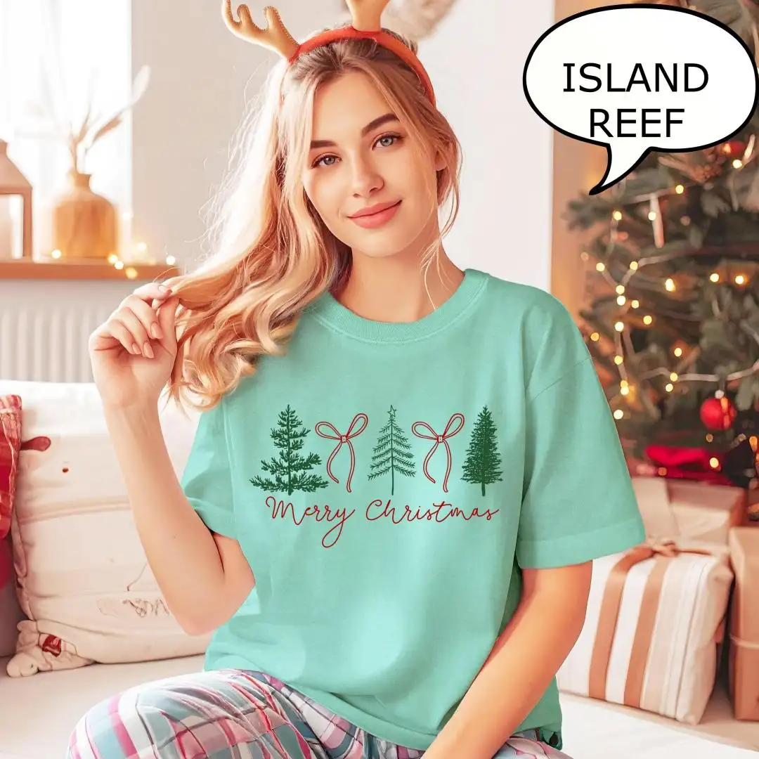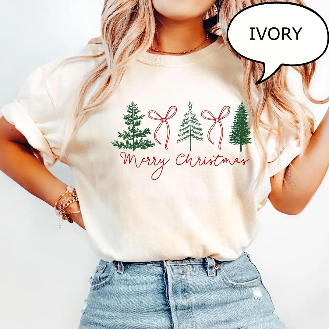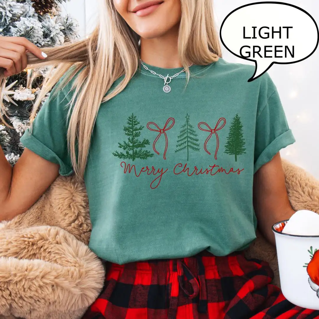 Review Coquette Bow Christmas Tree Holiday Shirt for Women