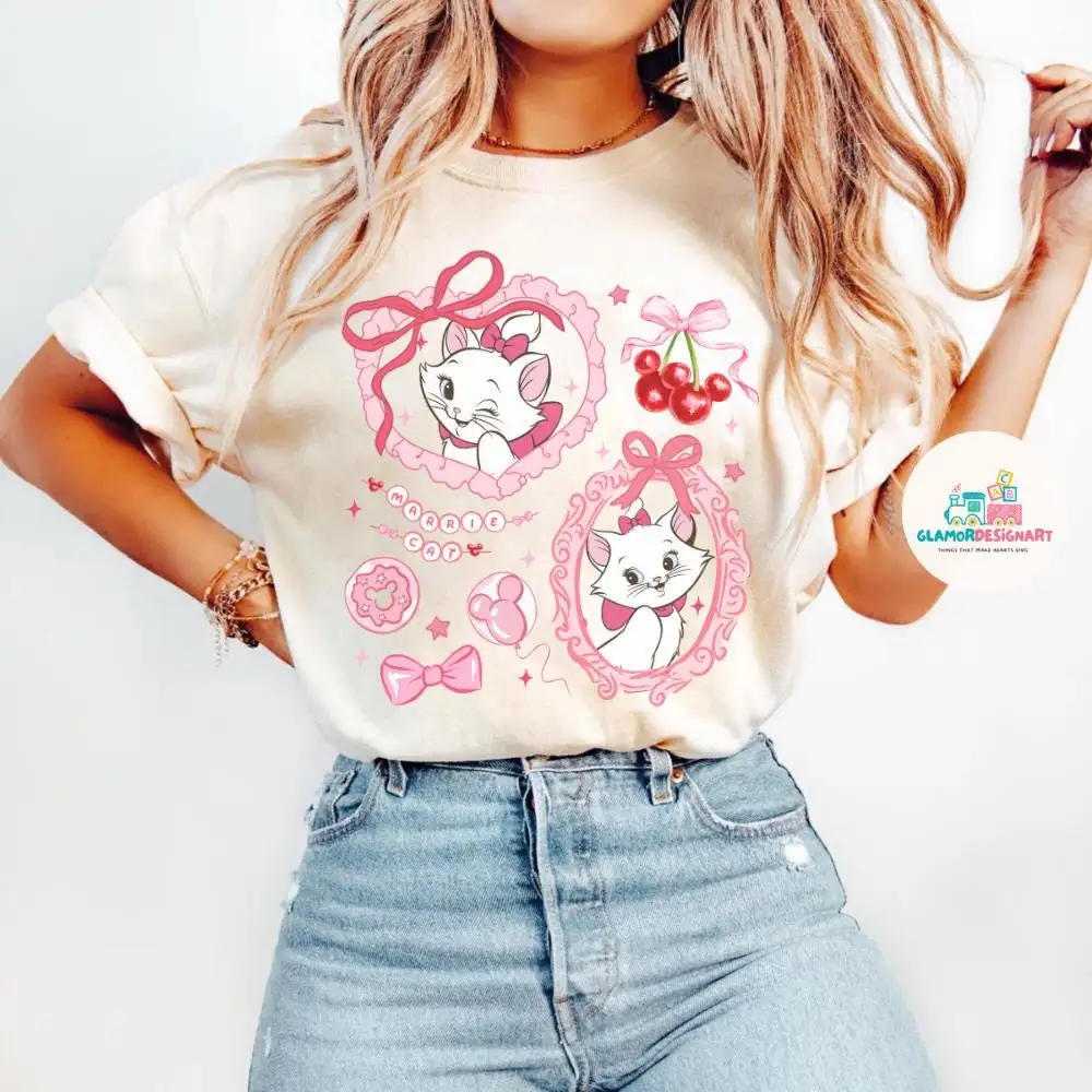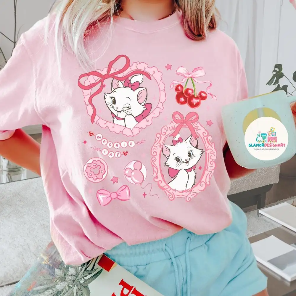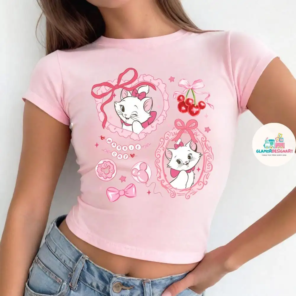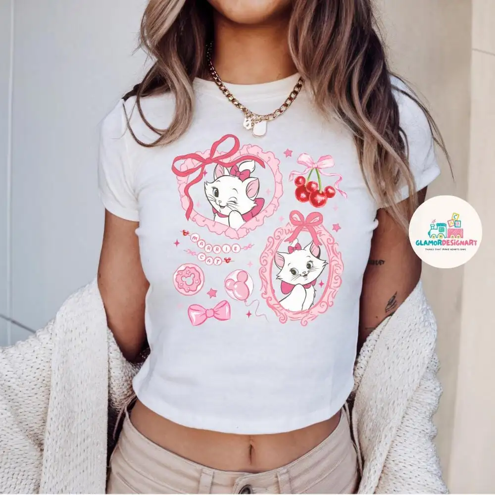 Coquette Bow Disney Marie Baby Tee Disney Girls Trip Shirt, Disney Summer WDW Magic Kingdom, Disney Shirt, Coquette Disney Strawberry Shirt