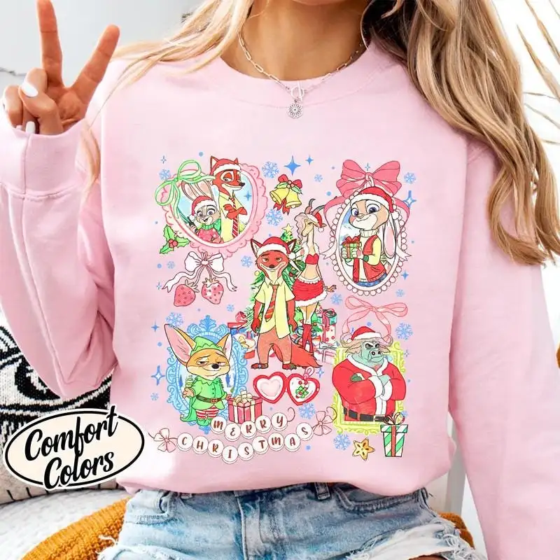 Review Coquette Bow Zootopia Christmas Shirt, Disneyland Christmas 2025 Shirt 06, Judy Hopps and Nick Wilde Christmas Shirt, Nick and Judy Shirt