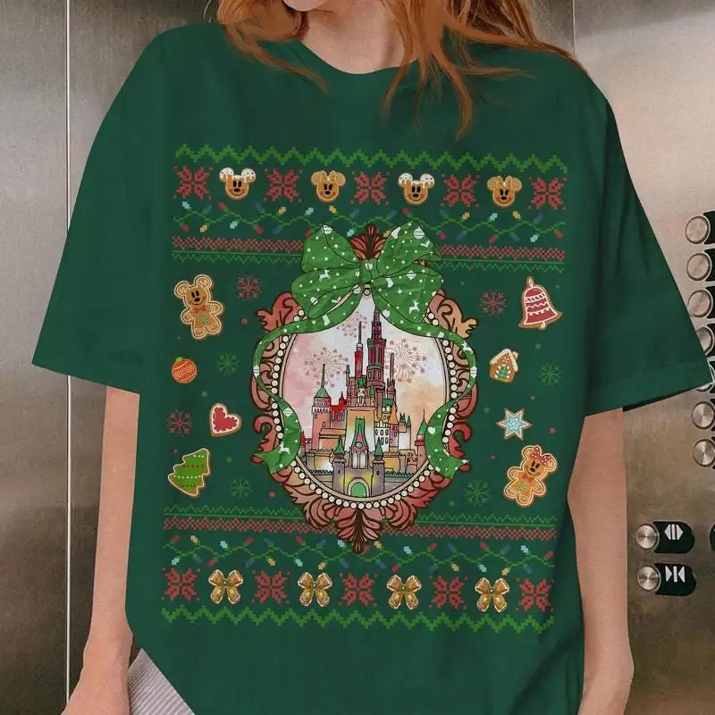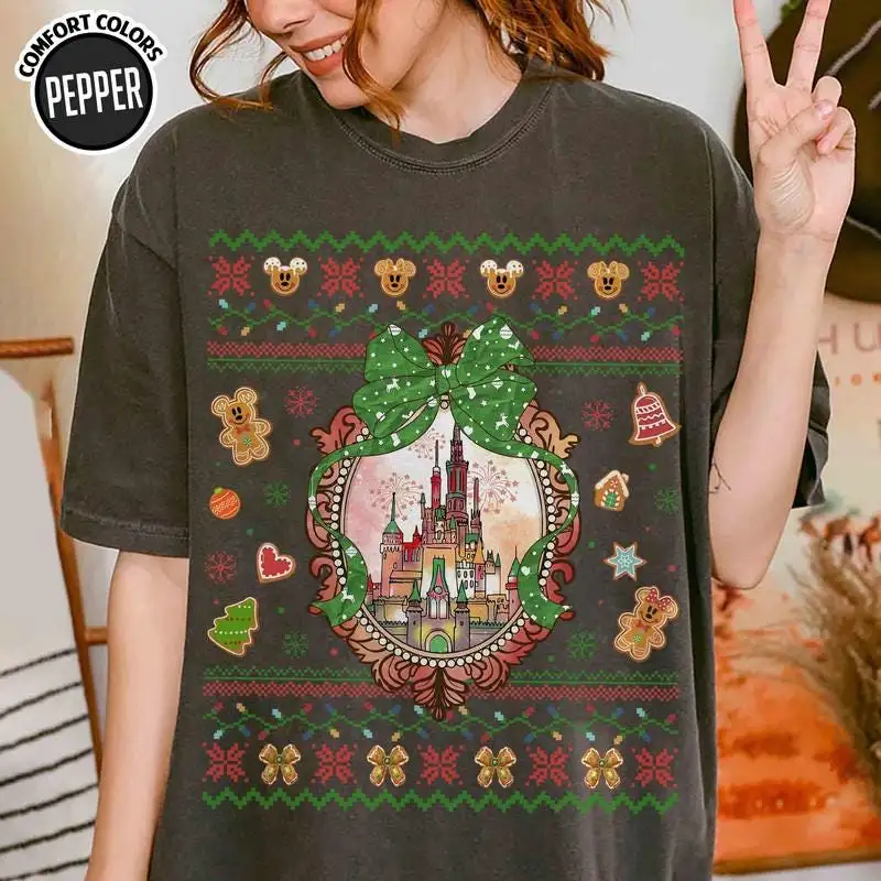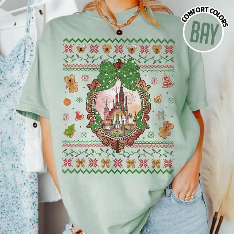 Coquette Bows Disneyland Castle Christmas Shirt, Magic Kingdom Christmas Shirt, Disneyland Christmas Family Shirt, Disneyland Xmas Trip 00