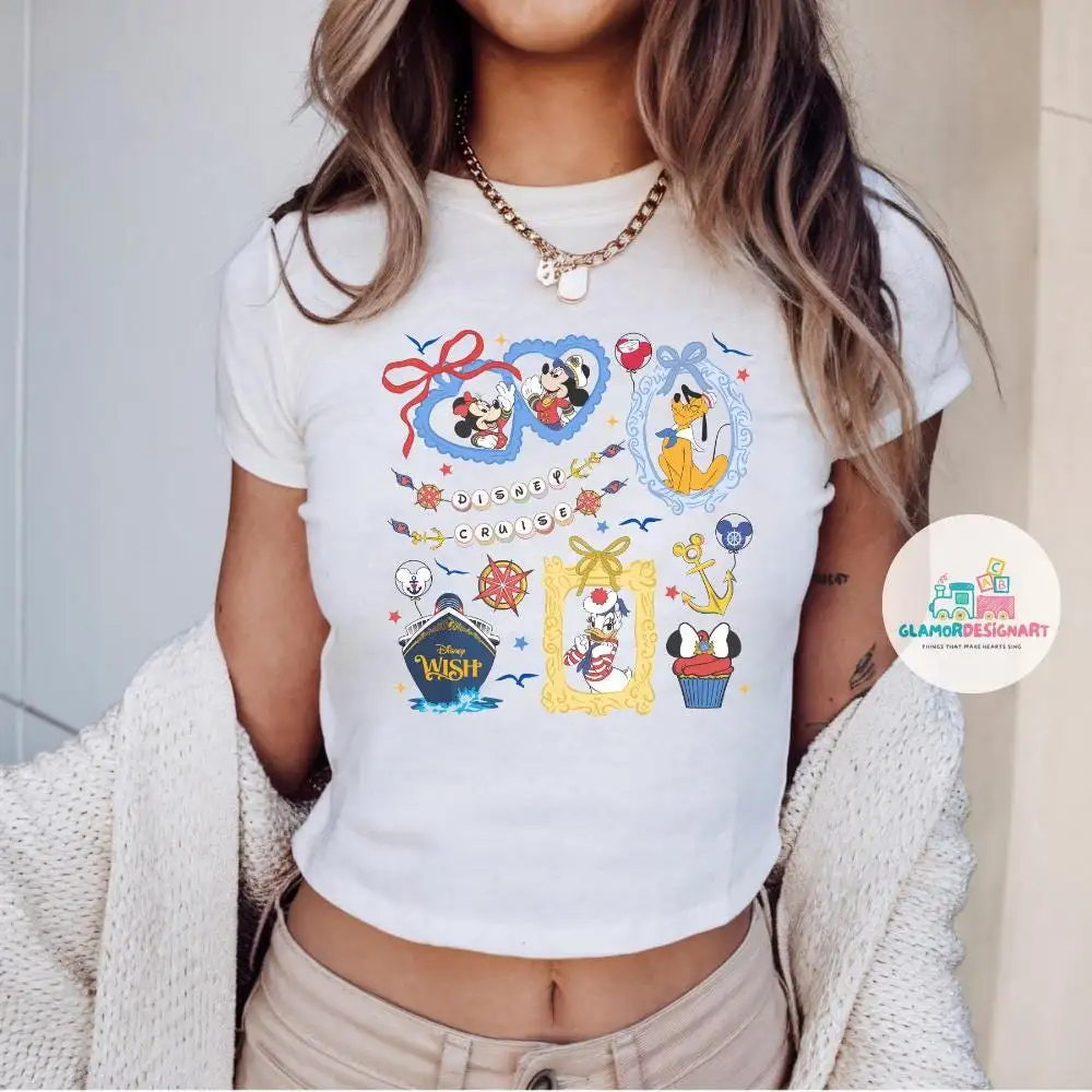 Coquette Disney Cruise Line baby tee, Mickey & friends Girly Aesthetics Cruise shirt, Girls trip shirt, Mickey Minnie locket Cruise shirt