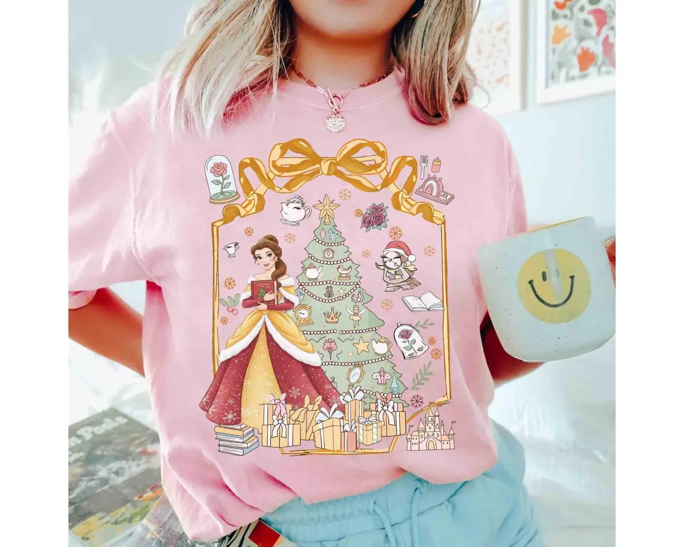 Coquette Disney Princess Christmas Shirt, Magic Kingdom Magical Castle Christmas Tee, Belle Ariel Xmas, Walt Disney Disney Girl Trip Gifts