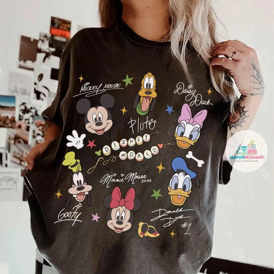 Review Coquette Mickey and Friends Signatures Shirt, Mickey & Co Shirt, Disney Tee, Disney Mouse Head Tee, Disney Characters Tee, Magical Shirt