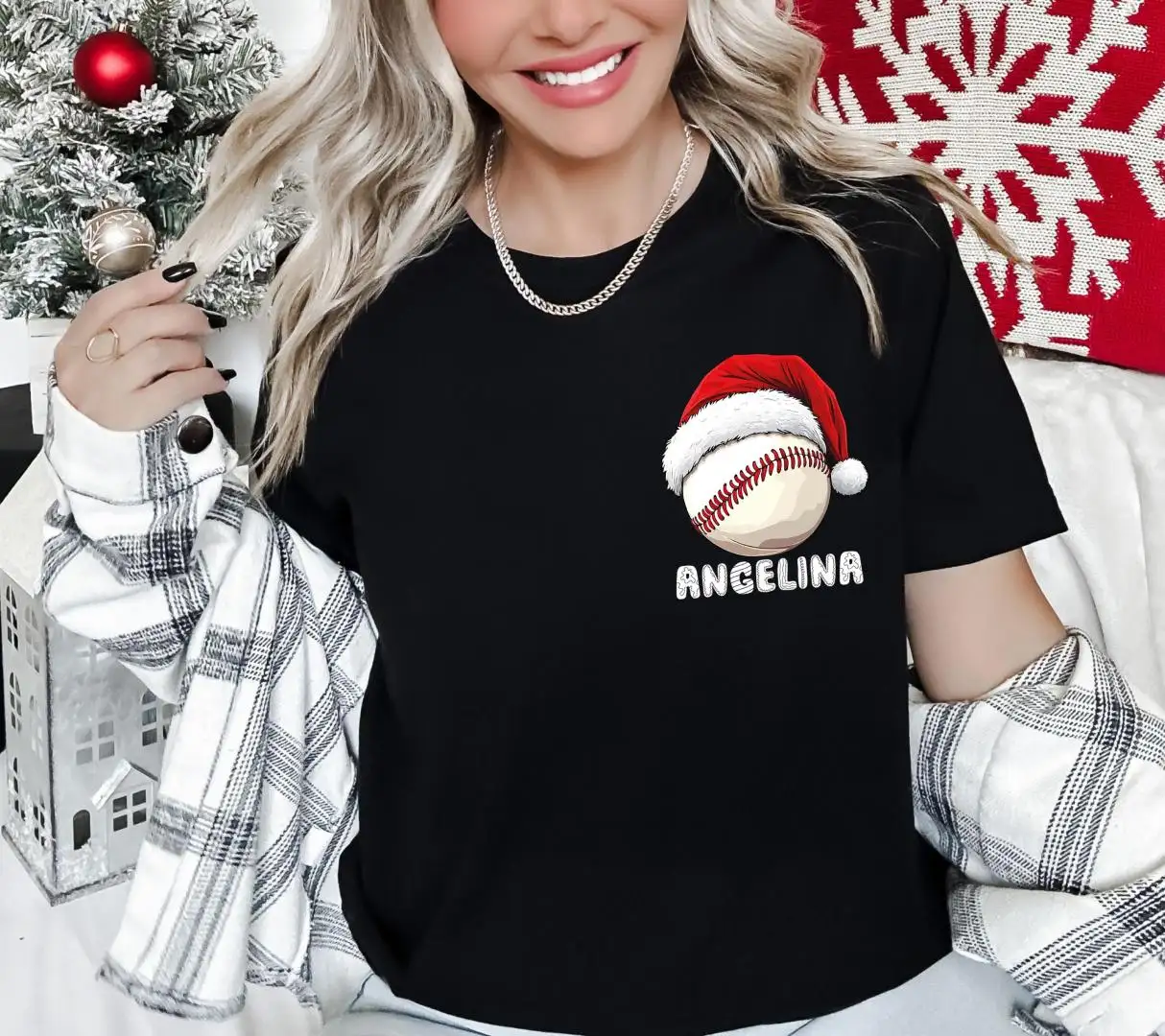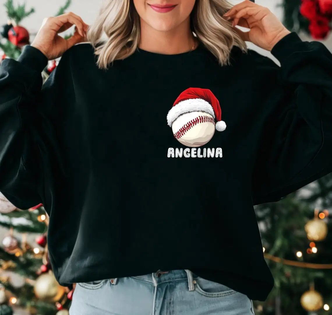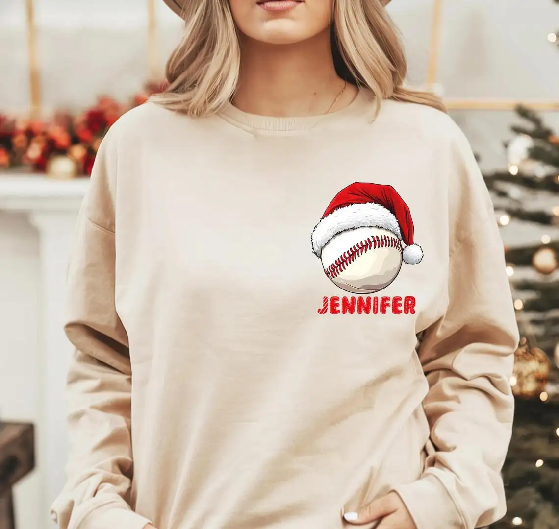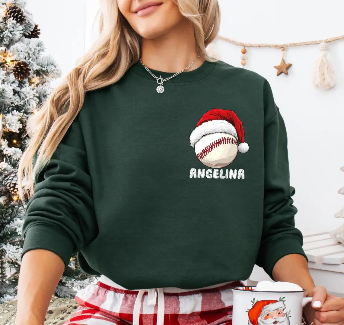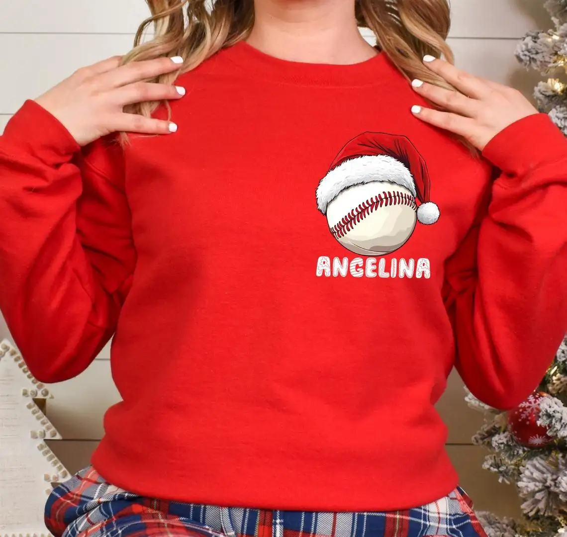 Custom Baseball Christmas Shirt, Family Xmas Holiday T-Shirt, Merry Christmas Sports Gift Tee, Santa Sport Lover Xmas Sweatshirt
