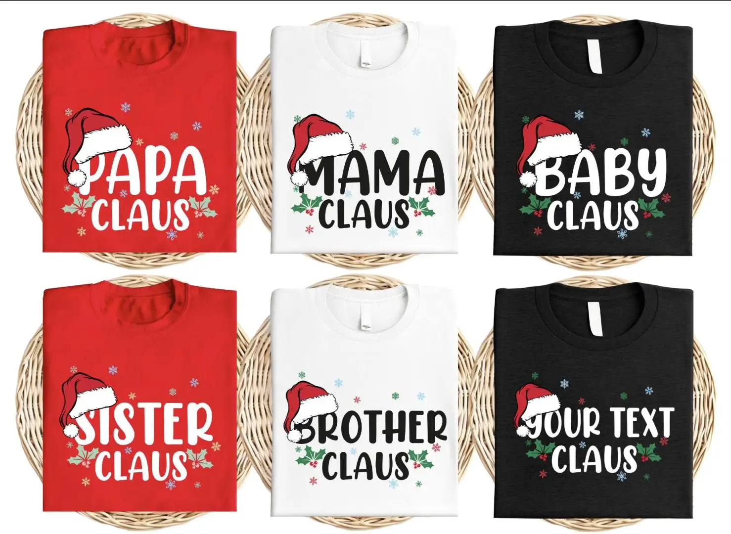 Custom Christmas Family Claus Shirt, Christmas Family Matching Sweater, Family Holiday Shirt, Christmas Mama and Daddy Claus T-Shirt
