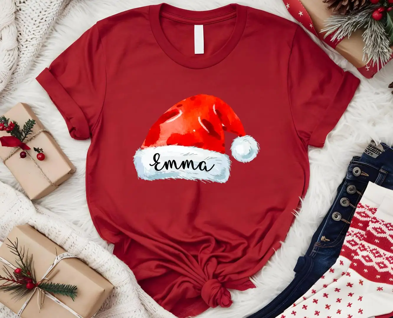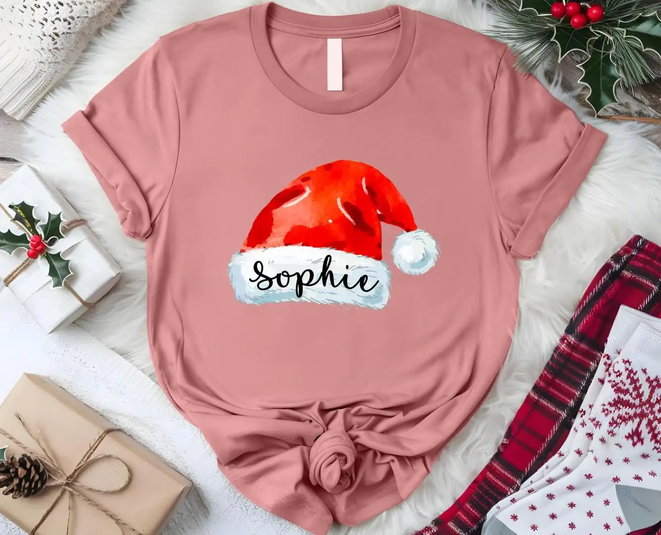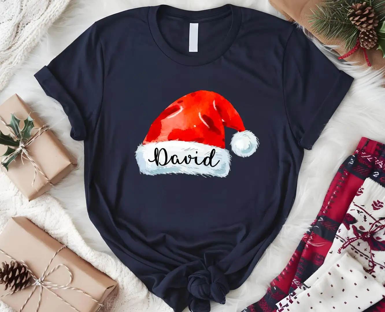 Custom Christmas Hat Shirt, Christmas 2025 Family Matching Shirt, Personalized Name Christmas Family Shirts, Custom Santa Shirt