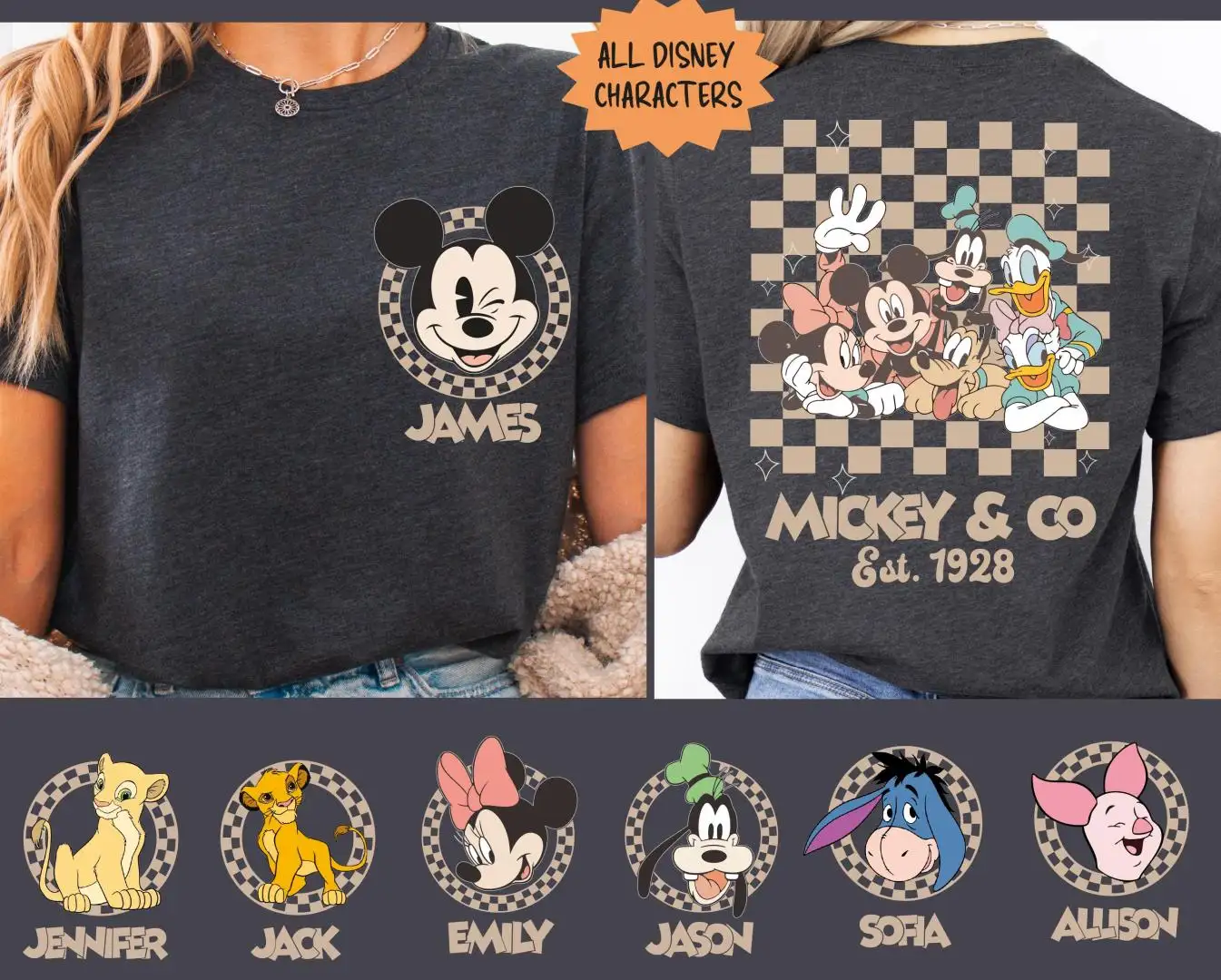 Review Custom Disney Character Retro Checkered Shirt for Family